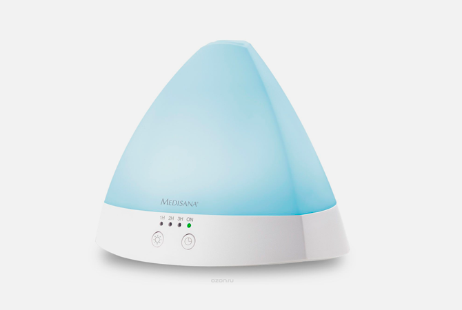 Этот гаджет выполняет роль ароматизатора, будильника, лампы и музыкальной колонки. Для удобства можно скачать приложение, чтобы управлять девайсом с телефона и настраивать под себя. Работает устройство так, что не нагревает ароматическую смесь или воду с маслами.