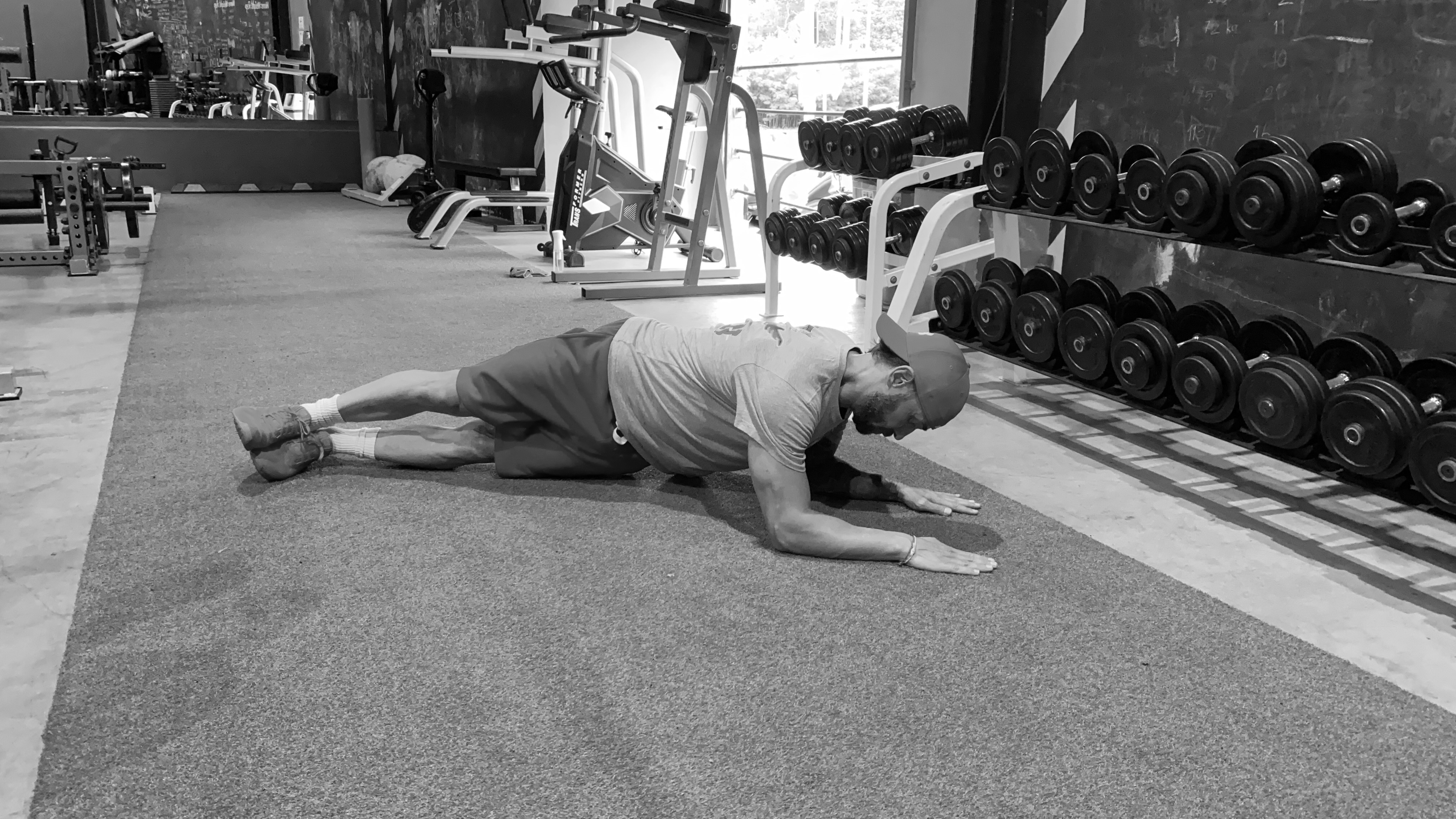 Исходное положение — стоя на локтях лицом вниз. Односторонне тянемся рукой под грудной отдел, слегка скручивая туловище. Задача — скручивать только его, оставляя таз и ноги неподвижными. 3 подхода по 10 повторений в каждую сторону.