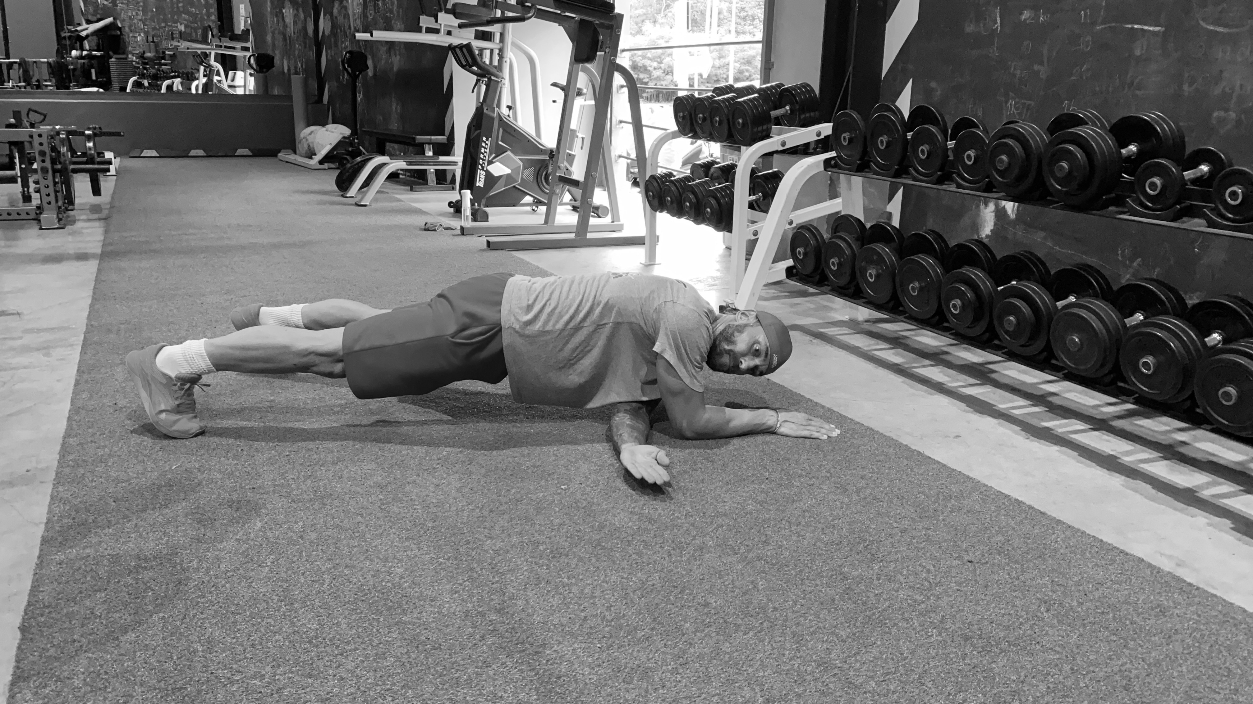 Исходное положение — стоя на локтях лицом вниз. Выдерживаем нейтраль, ноги выпрямлены. Поочередно скручиваем таз в каждую сторону и касаемся бедром пола. 3 подхода по 20 повторений.