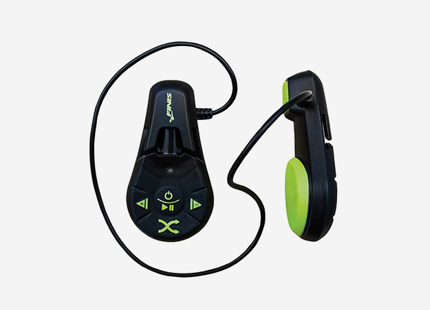Полезный гаджет для любителей плавания — водонепроницаемый плеер без наушников. Специальные накладки в виде клипс крепятся к ремешку очков и подают звук сквозь скуловые кости прямо во внутреннее ухо. При этом не блокируют окружающие звуки, что важно. Простое управление при помощи четырех кнопок, семь часов работы, память до тысячи треков разных форматов и зарядка на магнитной док-станции с USB-разъемом.