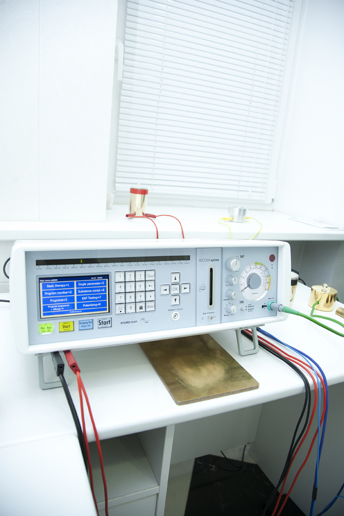 Неудивительно, что именно здесь, а не где-либо еще, пациентам предлагается диагностика на физиотерапевтическом аппарате нового поколения Bicom, который приехал в столицу из Германии и уже успел стать сенсацией в мире медицины. Прибор работает по принципу электромагнитных волн, и сегодня благодаря ему успешно и совершенно безболезненно можно диагностировать и лечить заболевания абсолютно всех органов и систем.