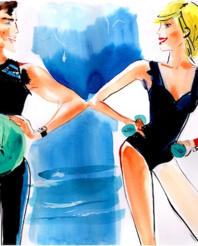 Результаты теста показали, что мне неообходимо набрать мышечную массу и снизить жир на 8%. Мой идеальный вес — 58-60 кг (невольно вспомнила Дюкана). Кроме того, выяснилось, что мои жиры лучше всего сжигаются на пульсе с отметкой "132", а значит, бег мне не грозит, — достаточно быстрой ходьбы. Дело в том, что я не поклонница бега в наших широтах. Мне холодно, неуютно и, конечно же, мой организм сопротивляется вдыханию московского воздуха, отравленного смогом и прочими токсинами.