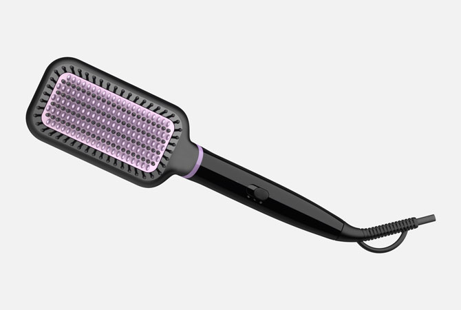 Марка выпустила новый фен — в виде расчески. В гаджет встроена функция ThermoProtect, которая не дает ему перегреться. Покрытие щетинок — турмалиновое, поэтому волосы не электризуются и не перегреваются. Самый удобный вариант использования новинки — это просушить волосы обычным феном и затем расчесывать в течение нескольких минут для выпрямления, разглаживания и придания блеска.