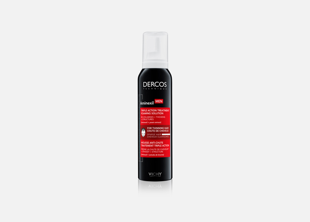 Новинка направлена на борьбу с выпадением волос у мужчин. В состав вошли компоненты, стимулирующие рост волос и повышающие густоту: экстракт дрожжей и аминексил — ингредиент, который предотвращает уплотнение коллагена вокруг волосяного фолликула и сохраняет эластичность тканей. Пенная текстура не создает липкости и быстро впитывается. Средство не нужно смывать.