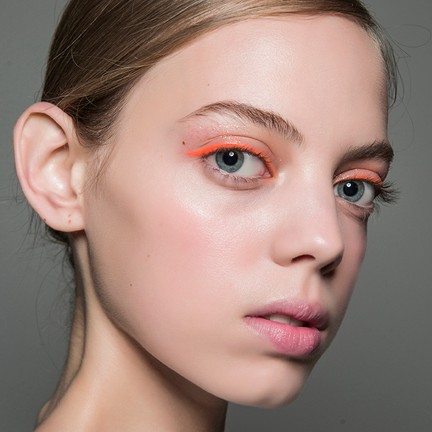 Яркие тени и подводки почти неоновых оттенков будут особенно актуальны в грядущем весенне-летнем сезоне. Как правило, это единственный акцент в макияже, не требующий помады на губах или проработанных бровей. В бьюти-образах для показа весенне-летней коллекции Delpozo визажист Моника Марко использовала неоново-оранжевый оттенок.