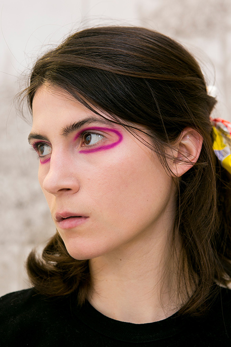 Визажисты показов Dans La Vie и Maison Margiela показали, как лучше всего использовать многогранную цветовую палитру в макияже глаз. На показе House of Holland в качестве дополнительного акцента на внутренний уголок глаза нанесли тени с глиттером. Для показа Ryan Lo был выбран необычный и броский макияж в стиле аниме.