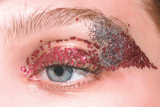 «Можно использовать крем, особенно это будет удобно в области глаз. Блестки не стоит наносить на неподготовленное веко, так как они по большей части имеют сухую текстуру и вам будет некомфортно. Но никогда не втирайте блестки, иначе они смешаются с пигментированной основой, например, тенями. Наносите глиттер плоской синтетической кистью легкими прикладывающими движениями. Для мелкодисперсных частичек можно использовать фиксирующий спрей для макияжа. Его нужно распылить до и после нанесения косметики», — предупреждает Анна Шимкова, ведущий визажист Lancôme.