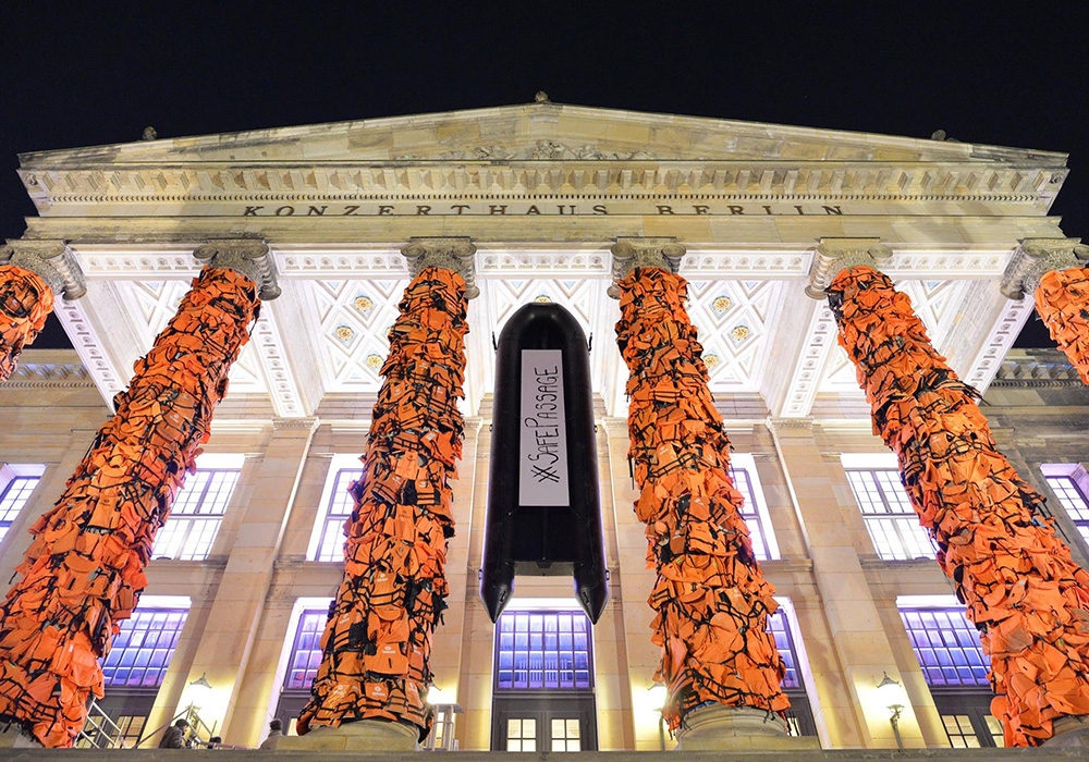 AI WEIWEI WRAPS BERLIN’S KONZERTHAUS WITH 14,000 REFUGEE LIFE JACKETS