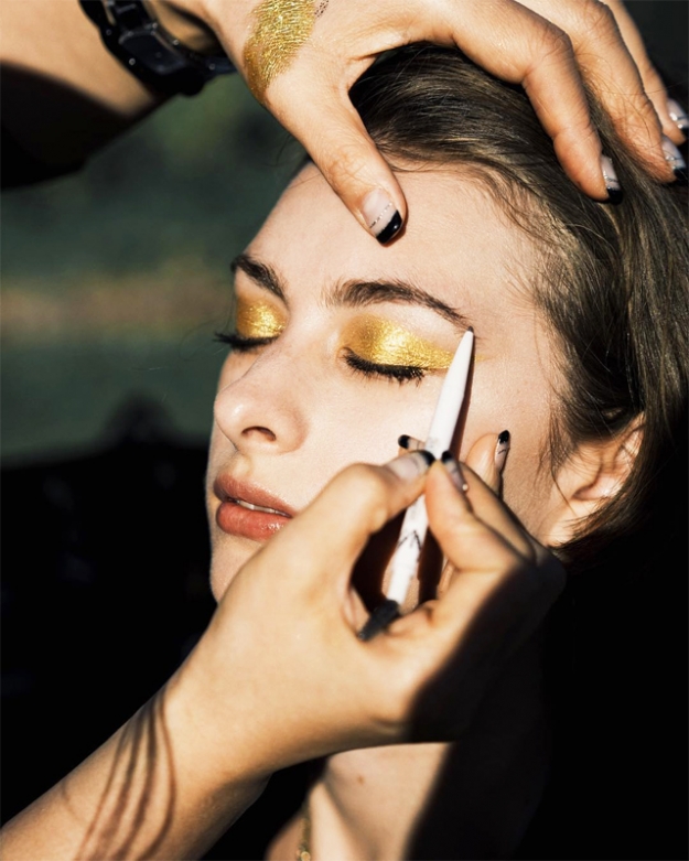 Если посмотреть Instagram бьюти-легенды, то можно увидеть, какое количество тизеров предшествовало выпуску средства: модели с золотыми губами и веками с бэкстейджа и с показа, а затем и короткие видео, на которых в пробирке с водой смешивались частички золота.