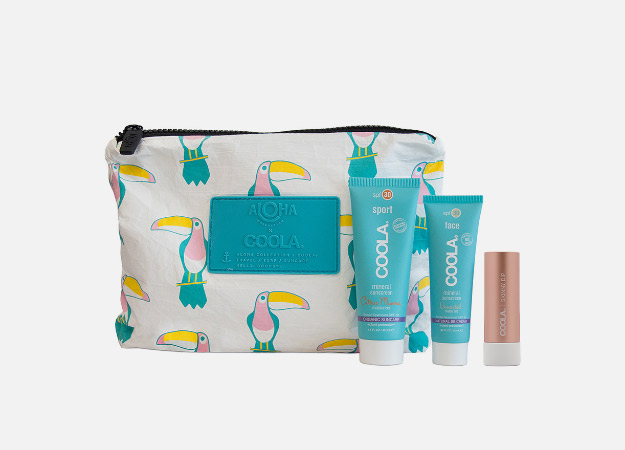 Косметичка для тех, кто собирается в отпуск на море. В набор вошли кремы для лица и тела — все с SPF 30. Все средства содержат 70 % прошедших сертификацию органических активных компонентов и 99 % натуральных. Крем для лица тонирует и матирует кожу, создавая легкую пудровую основу.