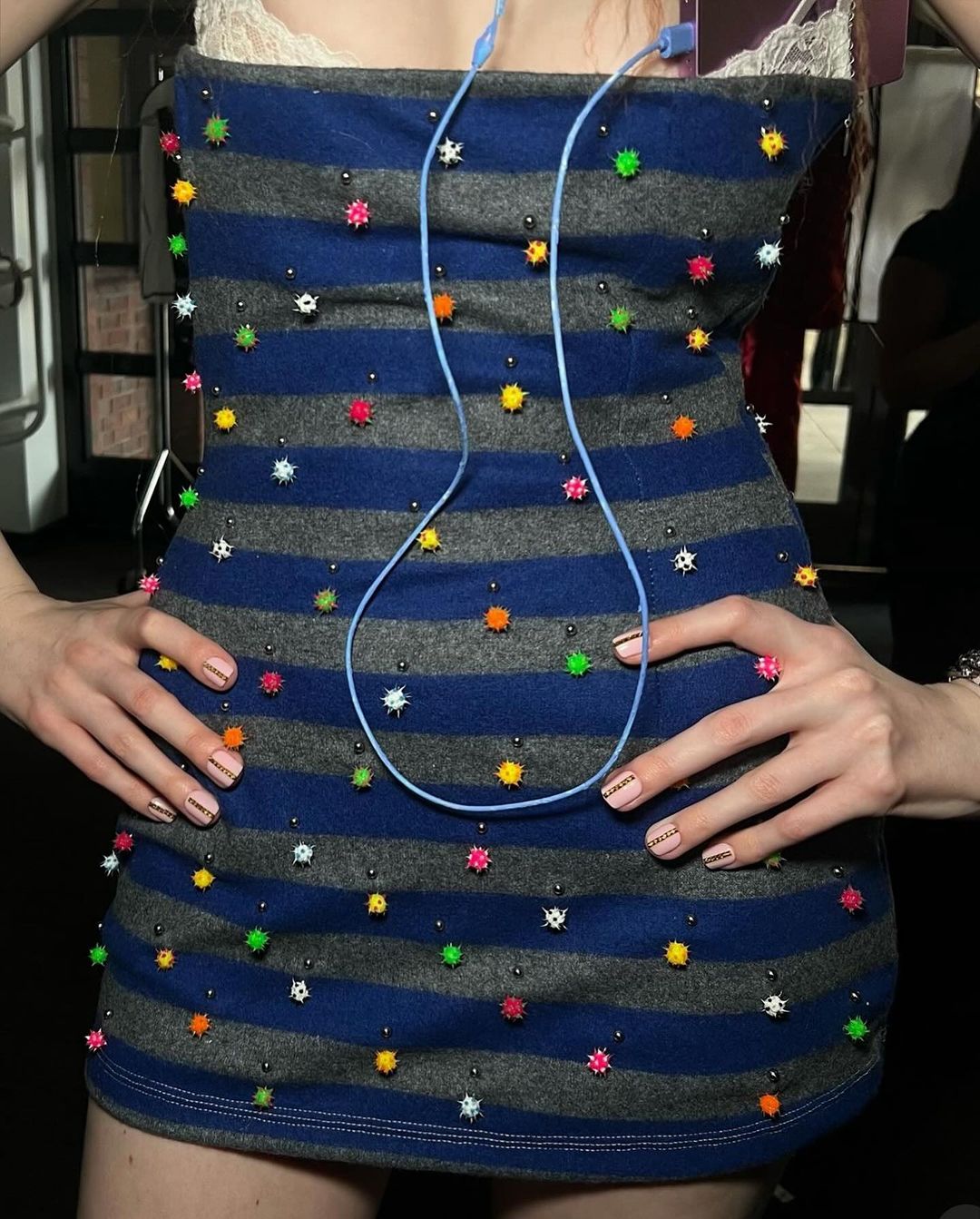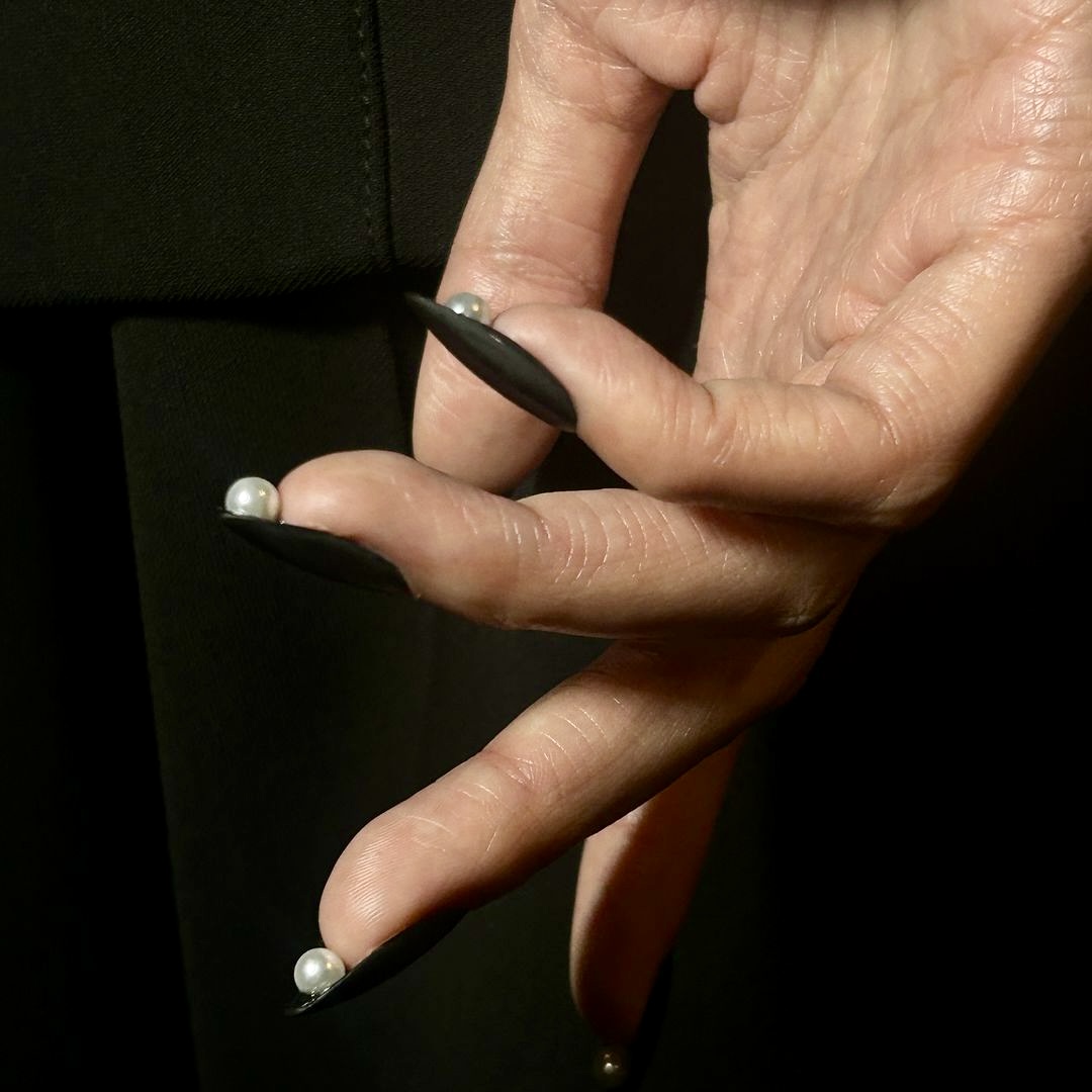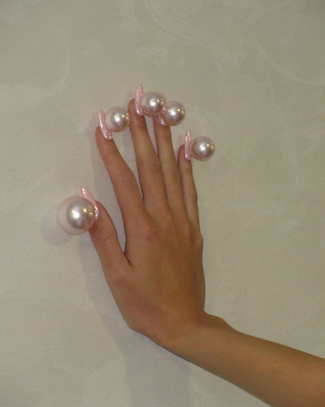 В неклассической форме — накладных ногтях «задом наперед», с фигурками на конце или бусинами во внутренней части пластины