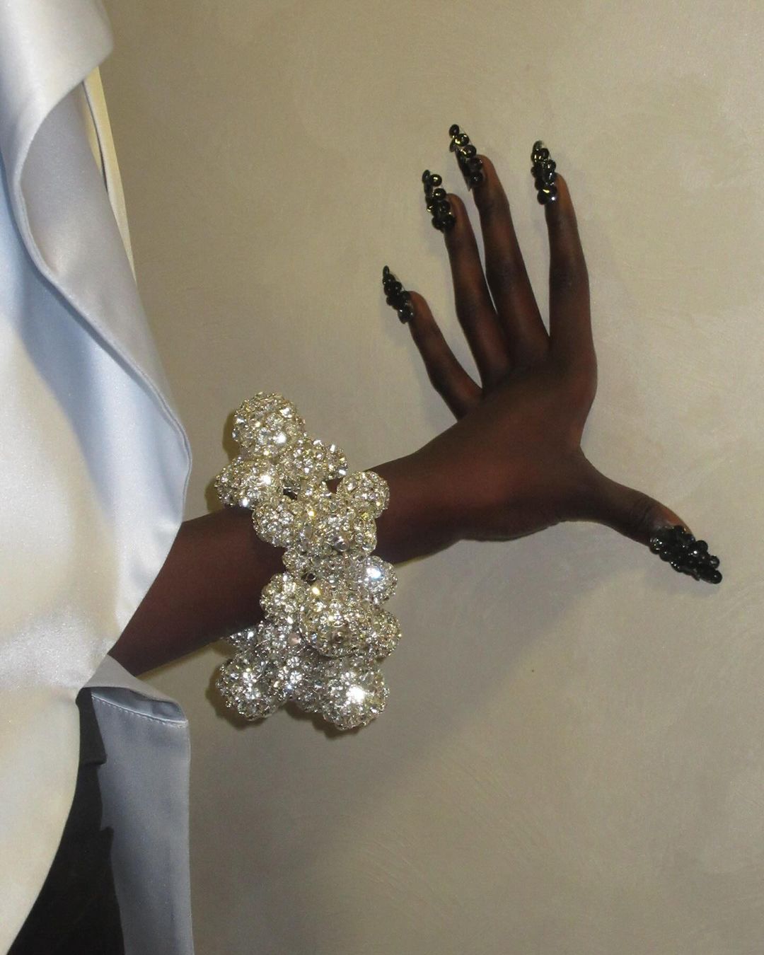 С большими и очень большими бусинами, наклейками, стразами и ниспадающим с ногтей кристаллическим «обвесом»