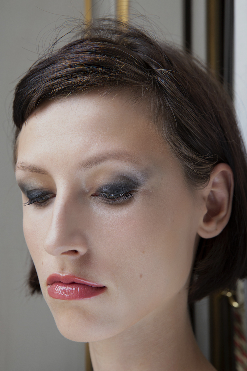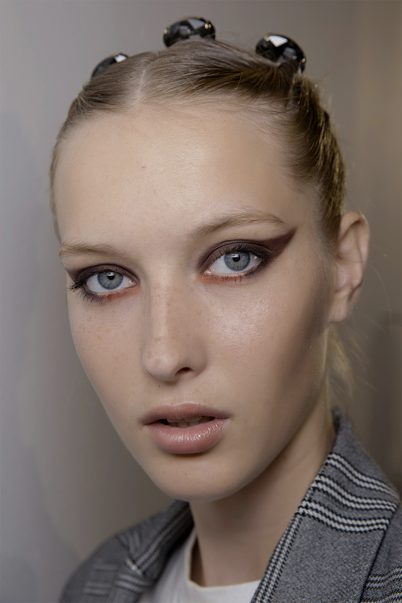 На показах Javier Ortega и Stephane Rolland визажисты тоже сделали ставку на смоки вытянутой формы. Такого эффекта они добились, используя консилер вдоль нижнего века.