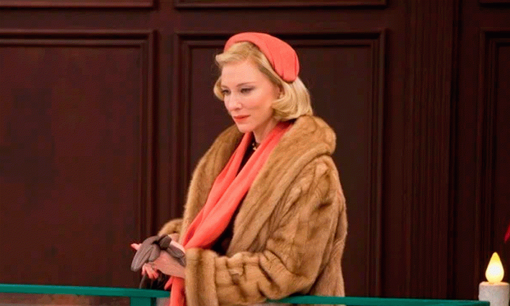 Кейт Бланшетт и Руни Мара рассказывают историю любви. В качестве декораций — зимний Нью-Йорк 50-х. Героиня Руни носит идеальное каре с челкой, черные водолазки и ободки. Героиня Кейт — всегда уложенный локонами боб и меховые пальто (в создании ее образа команде помогли фотографии Грейс Келли и Дорис Дэй). Каждый кадр — как будто открытка из винтажного магазина.