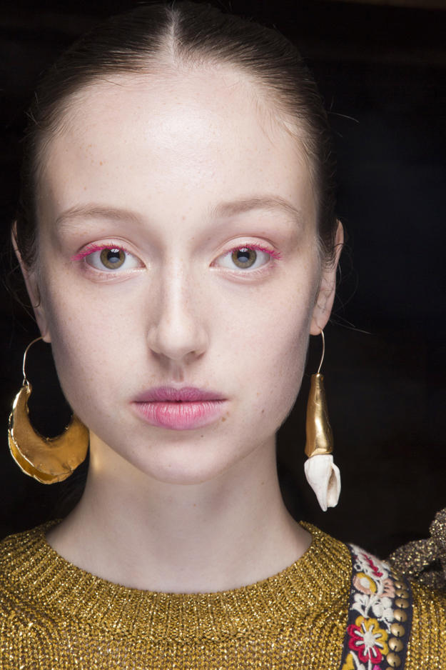 На смену актуальному в этом году пастельному розовому придет более насыщенный оттенок, напоминающий фуксию. Акценты могут быть любыми: графичные стрелки как на показе Chromat, тушь как на Ulla Johnson или помада на Lapointe. Смелую идею предложил визажист Джеймс Калиардос на показе Rodarte, который гармонично скомбинировал красную помаду с тенями цвета фуксии.