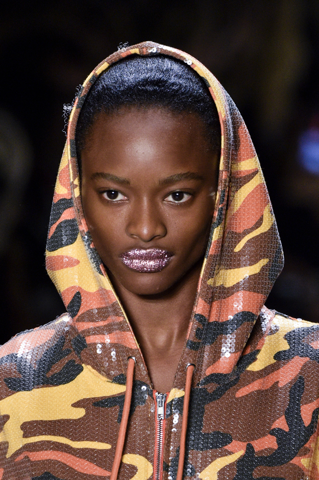 Блесток в новом сезоне будет немного меньше, но на паре показов они встретились. У Tadashi Shoji блестки украшали веки и виски, создавая эффект крыльев бабочки. Для показа Jeremy Scott визажист Кабуки использовал не блестки и не помаду, а сухой пигмент с глиттером, который он «впечатал» при помощи аппликатора.