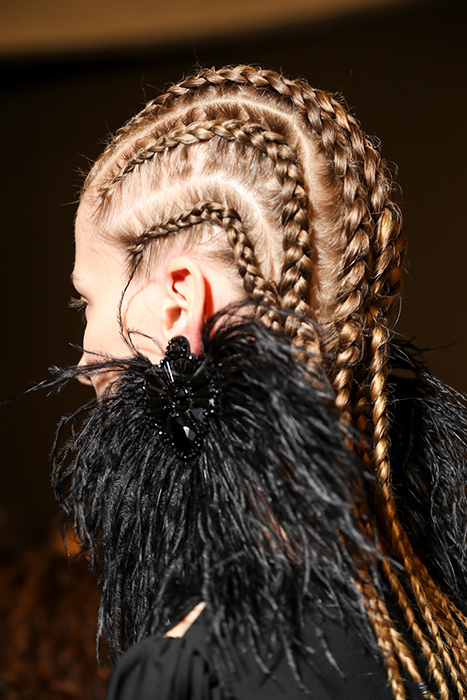 За минувшие Недели мод было много вариаций на тему плетения из волос, но нам больше всего запомнились косы в стиле панк на подиуме у Fenty, тугие французские косы у Balmain, а также стоит отметить тонкую работу стилистов Valentino и H&M. Однозначно уйдут на улицы мегаполисов тугие длинные косы, как у моделей Gypsy Sport, а для вечернего варианта подойдут расслабленные и утонченные, как на показе Alberta Ferretti. Для более оригинального выхода можно завязать косу в нескольких местах шнурком или нитью, напоминающей медную проволоку, как сделали стилисты на показе Christian Siriano.