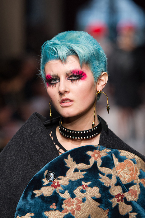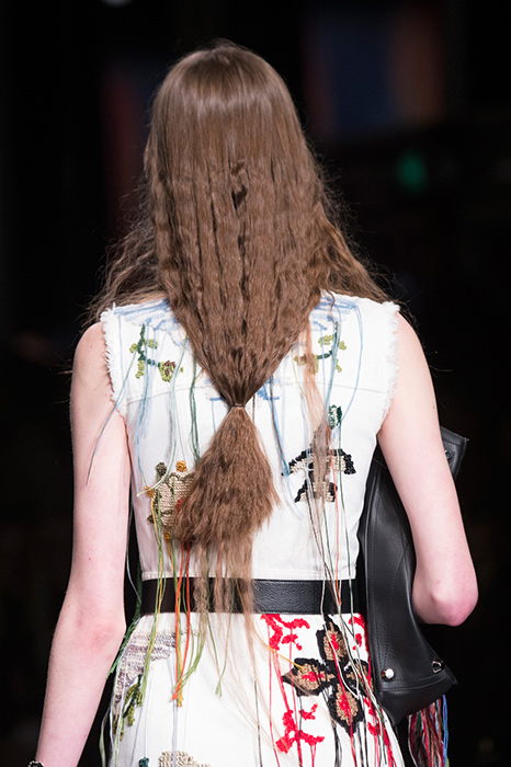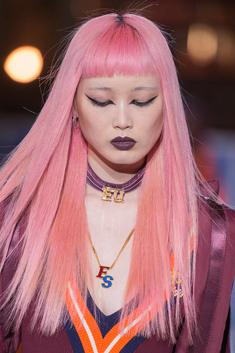 Пока подиум напоминал цветовой бум, стилисты не останавливаясь раскрашивали волосы моделей во все цвета радуги. Не в буквальном смысле, разумеется. Кто-то обходился вставками цветных прядей из искусственных волос, как, например, Versace. Кто-то отдал голос в пользу цветных париков кислотных оттенков и панк-стилистики. Красочнее всего получилось Ryan Lo и его аниме-истории. Хотя пройти мимо ободков из цветных прядей у Issey Miyake или пудровых оттенков волос на показе Mimi Wade у нас не получилось.