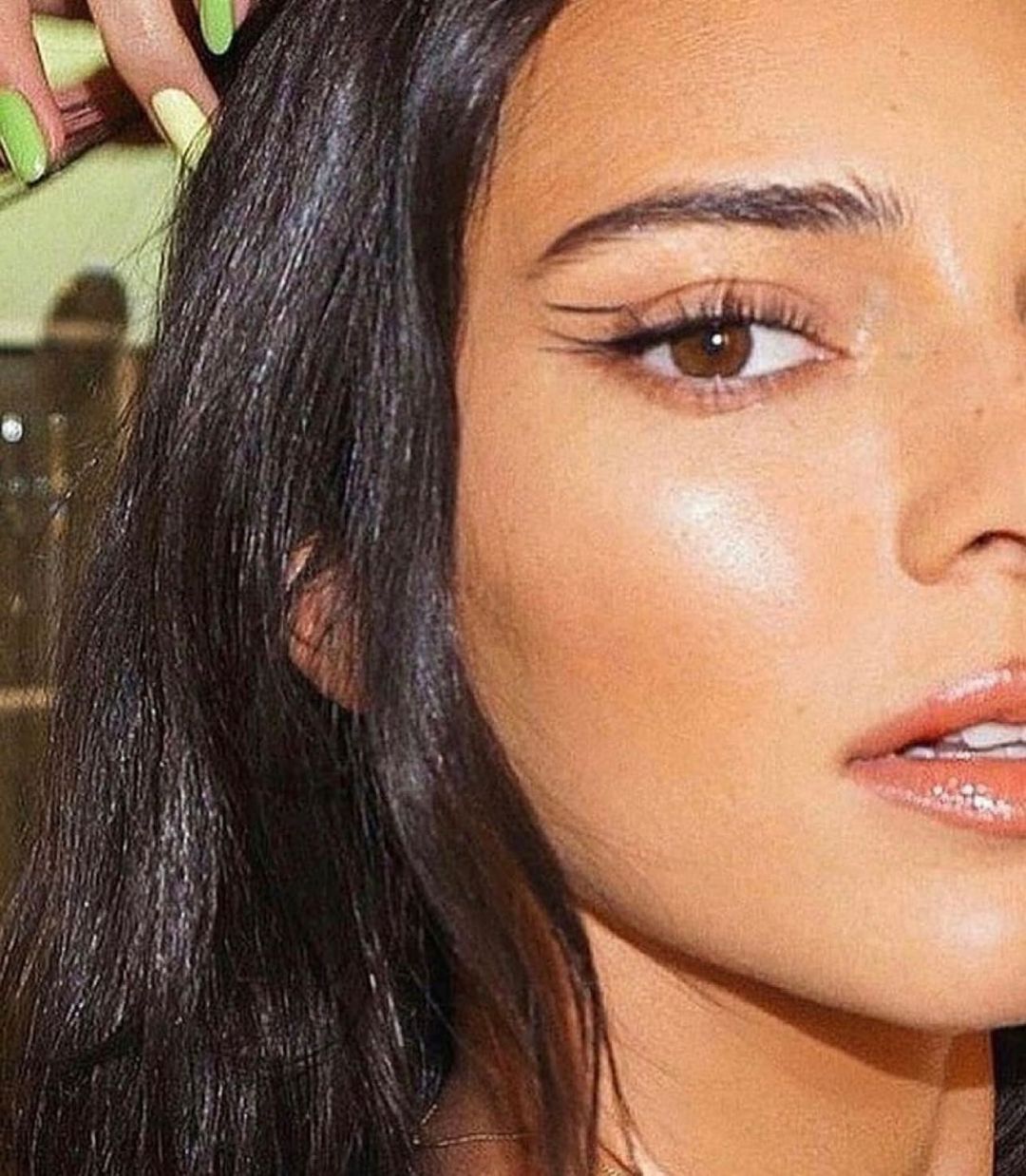 Если вы новичок, и рисовать идеальные стрелки ваша рука не привыкла, выбирайте «ленивый» вариант — как у Кендалл Дженнер. Возьмите гелевый насыщенный лайнер и нарисуйте или один, или несколько коротких штрихов во внешних уголках глазах. Или вовсе проведите прямую горизонтальную линию на верхнем веке. Да, в 2021 году такой макияж выглядит ничуть не хуже, чем голливудские стрелки, как в ретро-фильмах.