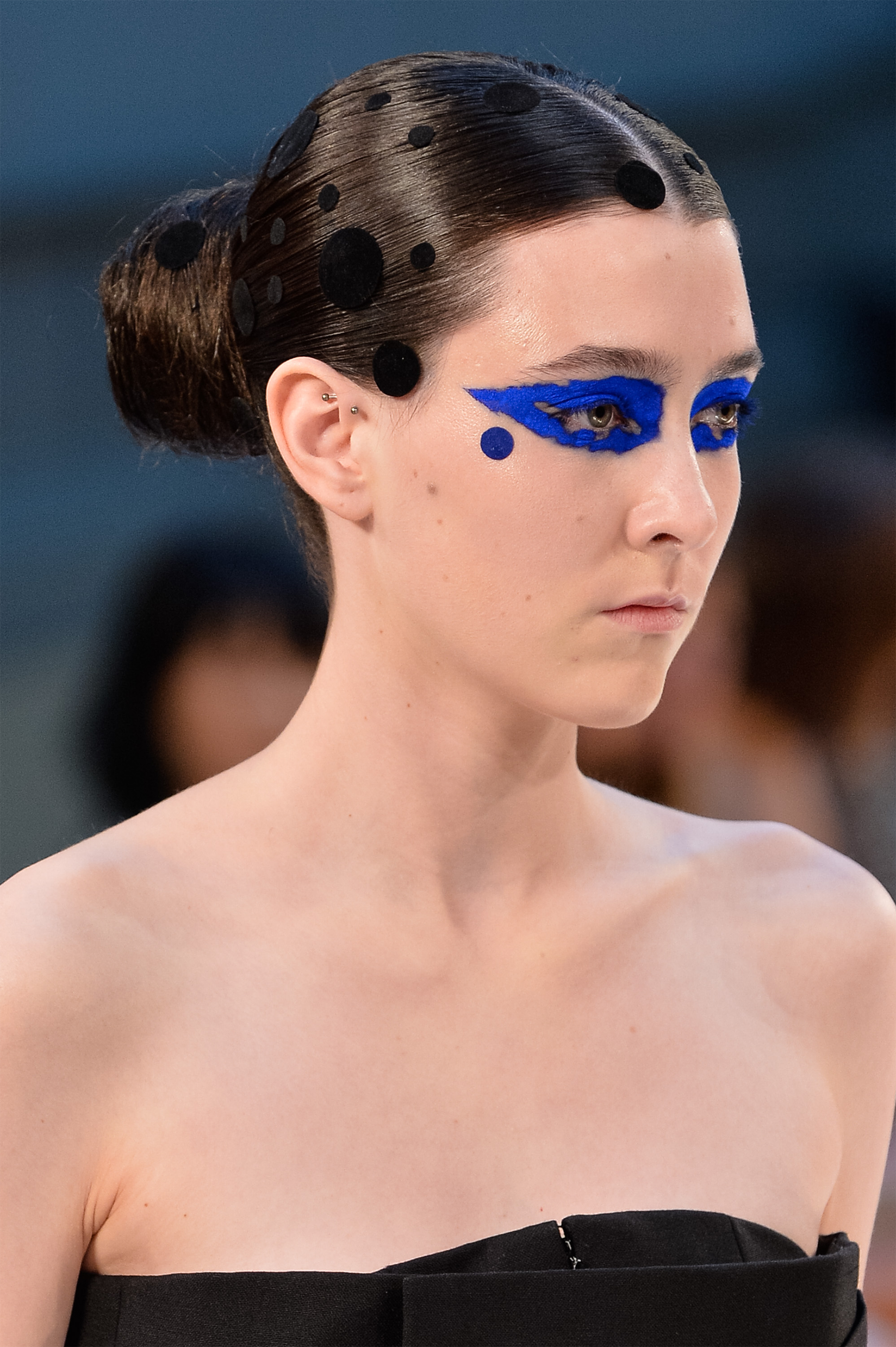 Если ровные линии не ваш конек, берите кисть, гелевую подводку и рисуйте размашистые стрелки. Лучше не черные, а яркие. Пусть референсом будет кутюрный показ Maison Margiela.