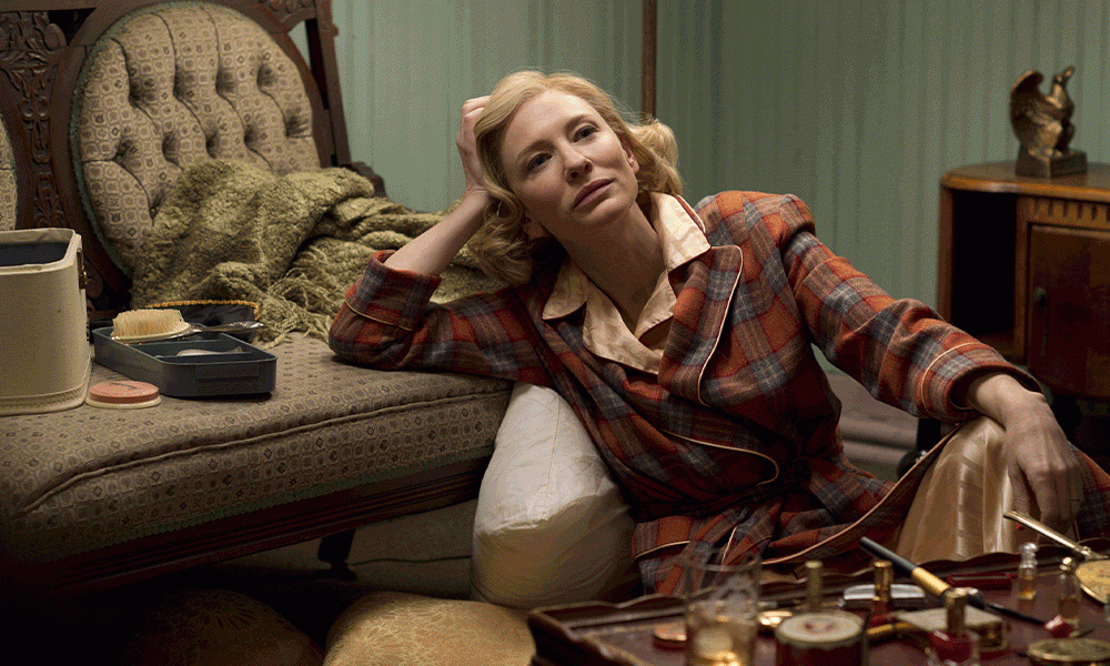 Кейт Бланшетт и Руни Мара рассказывают историю любви. В качестве декораций — зимний Нью-Йорк 50-х. Героиня Руни носит идеальное каре с челкой, черные водолазки и ободки. Героиня Кейт — всегда уложенный локонами боб и меховые пальто. Каждый кадр — как будто открытка из винтажного магазина.