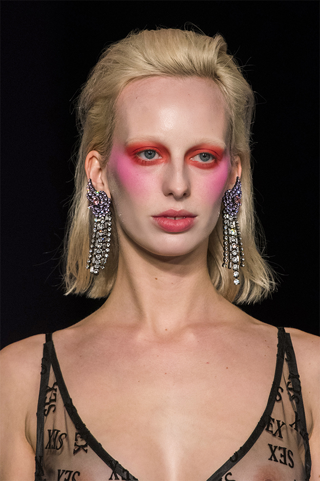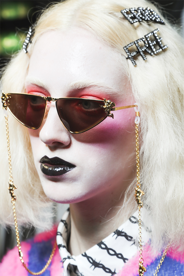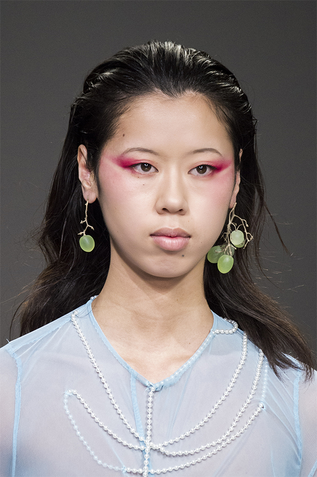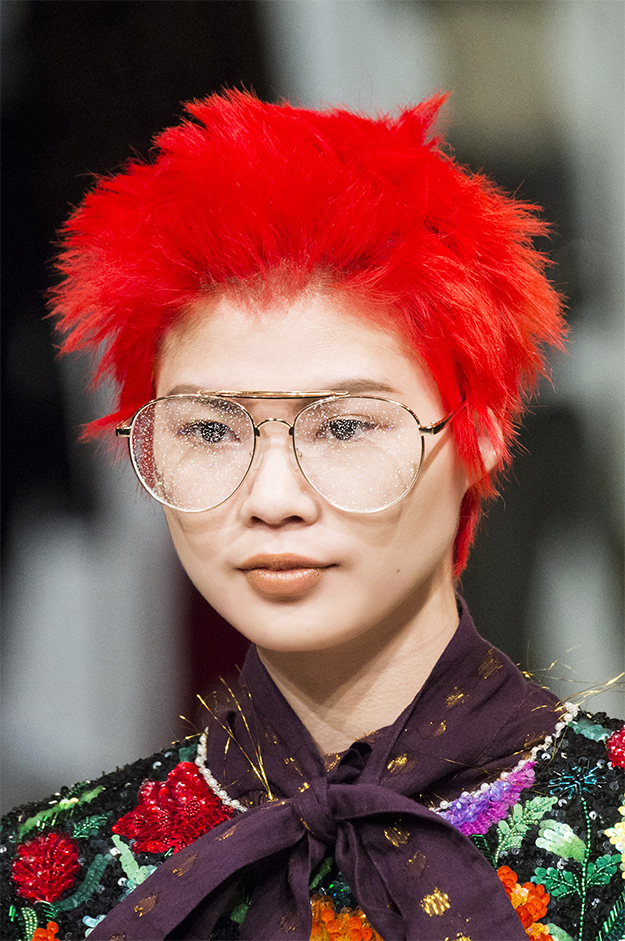 Вновь на подиуме встретилось много образов с окрашенными в разные цвета волосами. Пылающие красные — на Ashish, розовые — на Nicopanda, седые — на Shrimps.