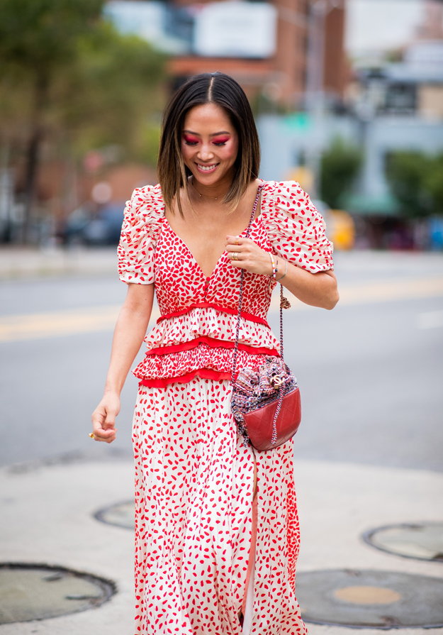 Самой популярной прической гостей недель моды стало каре, универсальное в любой укладке — с локонами, в гладкой графике и в стиле sleek. Каре разной длины — от короткого, прикрывающего уши, с французской челкой до удлиненного боба, выглаженного и разделенного на прямой пробор.
