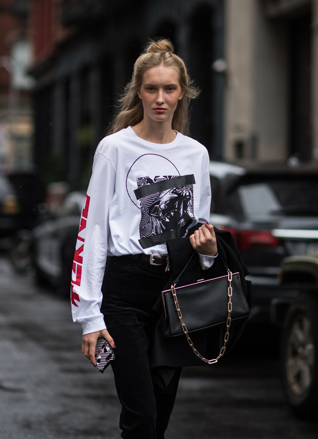 Многие обладательницы длинных волос появились на улицах модных столиц с простыми хвостами. Высокий или низкий хвост — неважно, волосы также могут быть как выпрямленными, так и завитыми.