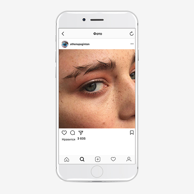Разделить бровь пополам и уложить верхний ряд волосков вверх, а нижний вниз — такой способ работы с бровями придумала финский визажист Стелла Сиронен. В инстаграме различные вариации бровей-перьев можно найти по хештегу featherbrow.