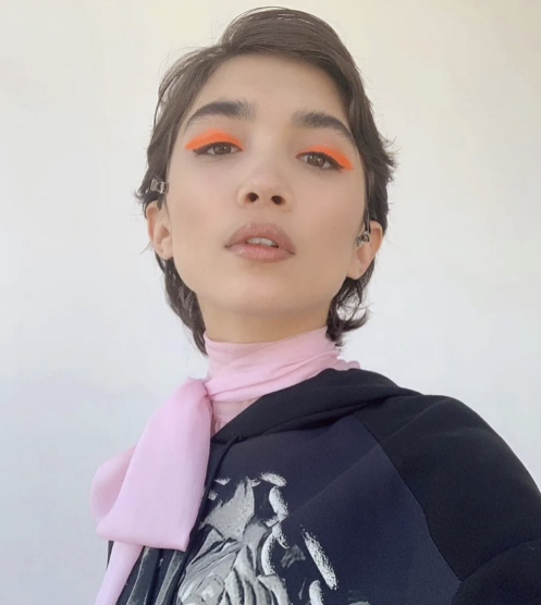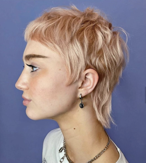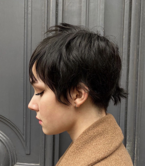 Современный вид бикси — с удлиненной косой челкой, уложенной набок, и подбритыми висками. Но никто не запрещает оставить олдскульный вариант — легкомысленно растрепанные пряди, образ «только что проснулась и не успела сделать прическу».