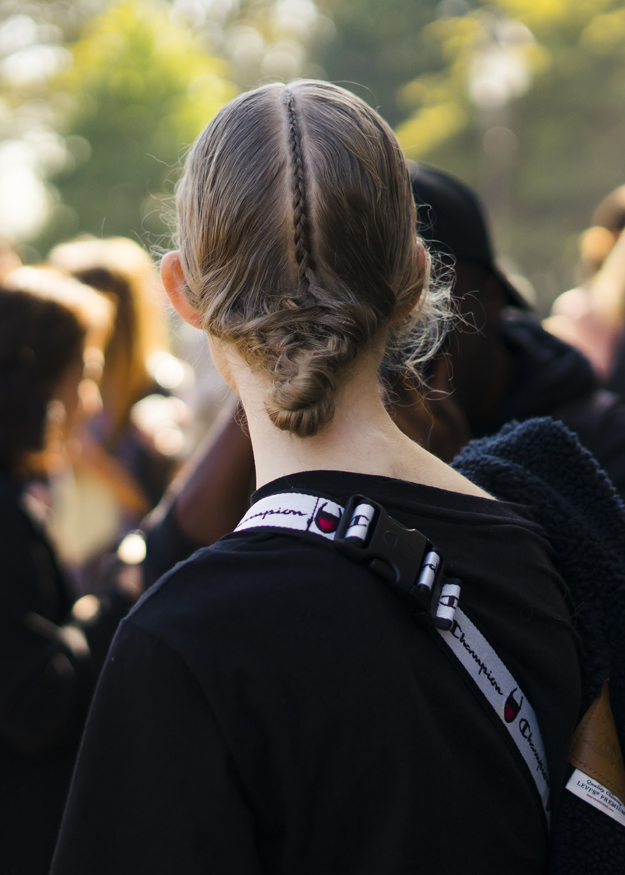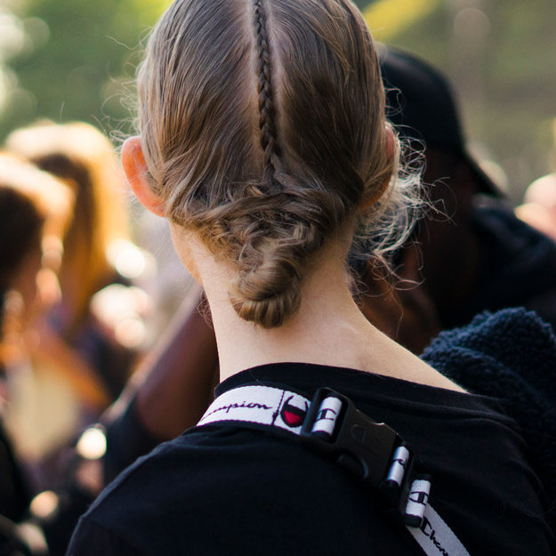 Стилисты пока не так живо работают с косами, как 2 и 4 года назад, но все же не отказываются с ними экспериментировать. Тугие и гладкие косы завязали стилисты на показе Alexander McQueen, а на Paco Rabanne низкие пучки украсили изящной косичкой по центру пробора.