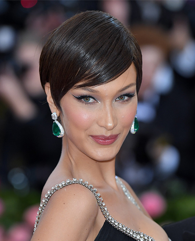 Все чаще на «Оскаре» встречаются однообразные скромные образы, поэтому решение актрисы — смелое и яркое. Для церемонии она сменила блонд и форму стрижки, появившись с коротким каре с прямым срезом и шоколадного оттенка волосами. На губах — морковно-красная помада.