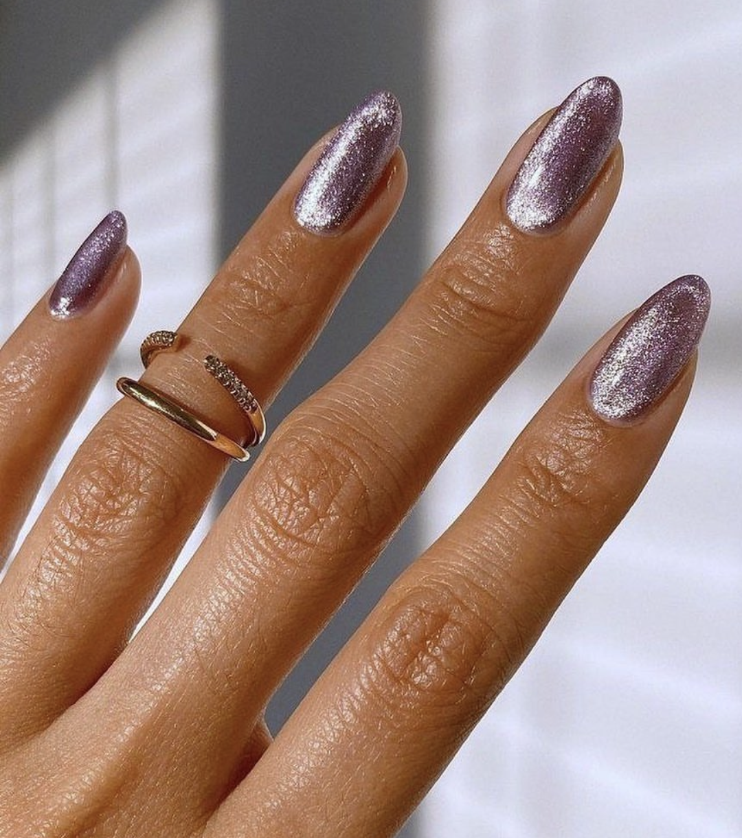 - Еще создать нужный бархатный эффект помогут лаки с матовым финишем, флоковый порошок или глиттер. Лаки с глиттером также наносите в несколько слоев, чтобы добиться плотного покрытия без пробелов и чуть объемной текстуры.