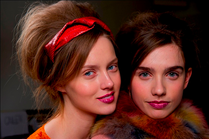 Образы на показах Derek Lam, Moschino Cheap and Chic, Vera Wang, Clements Ribeiro возвращают нас на несколько десятилетий назад, в эпоху 60-х с ее роскошными начесами, косыми приглаженными челками и широкими лентами вокруг головы.