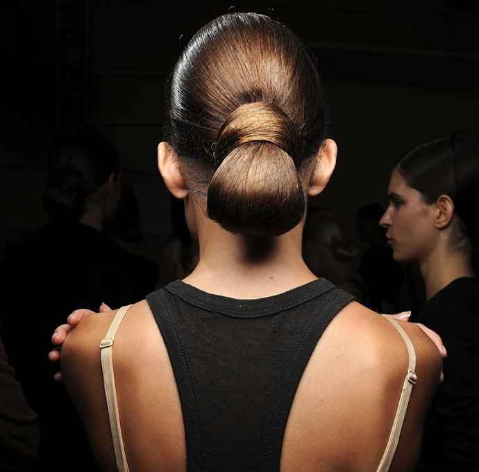 "Многие девушки, работающие с Консуэло (Кастильони), носят именно такую прическу". Стилист показа Пол Хэнлон