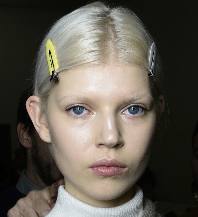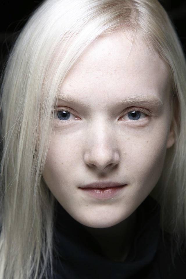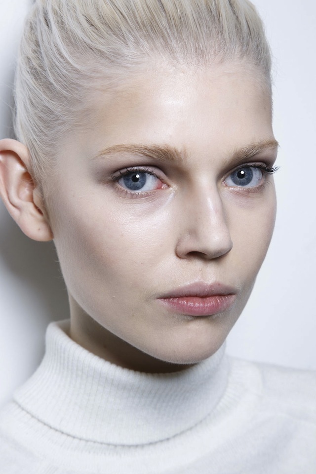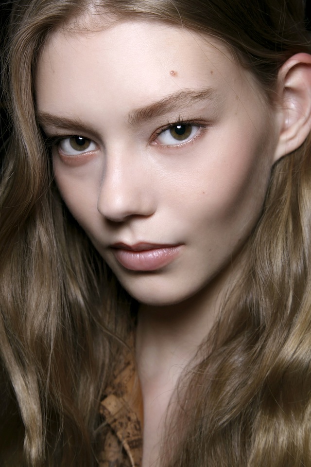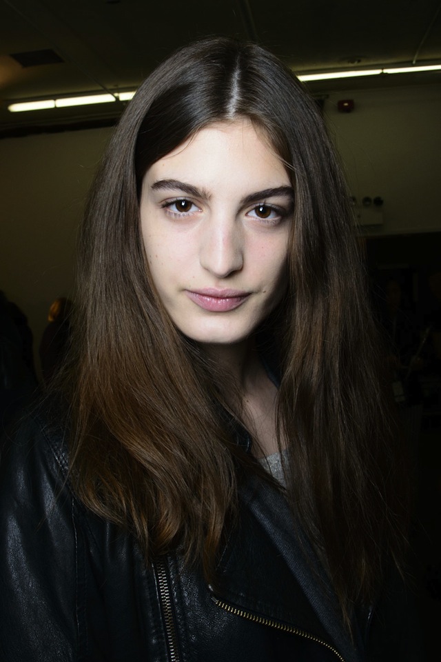 Британский дизайнер Виктория Бекхэм — одна из самых верных сторонниц простоты в макияже, когда речь заходит об образах для подиума. Поэтому визажисту Пэт МакГрат едва ли понадобилось многое из ее 50 сумок косметики для недель моды. "Виктория хотела, чтобы ее девушки остались такими же, какими они есть", — рассказала Пэт о просьбе дизайнера. Визажисту потребовалось лишь несколько штрихов, чтобы достичь нужного результата: капля консилера на некоторых участках, немного черной туши для кончиков ресниц и бесцветный бальзам для губ. На этом показе с Пэт работал ее частый напарник Гвидо Палау. Он учел любовь Виктории к сдержанным образам — разделил волосы моделей на прямой пробор и собрал в свободный низкий хвост. Чтобы добавить волосам текстуры и объема, Гвидо использовал сухой шампунь.