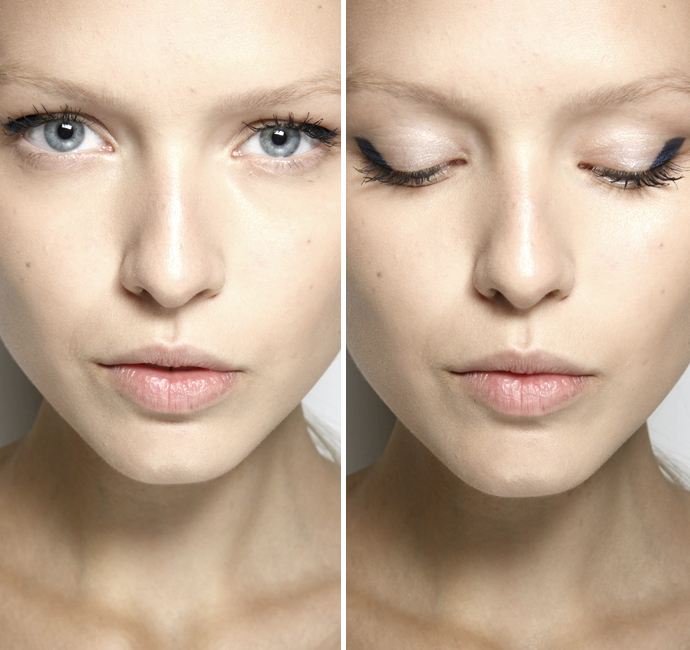 Стрелки по краю век были и у David Koma, а чуть более смелые и заметные, растушеванные с коричневыми тенями, — у Jonathan Saunders. К слову, от smokey eyes по-прежнему никуда не скрыться. Во всяком случае, дымчатые глаза, подчеркнутые бежевыми румянами и светло-бежевой помадой, на шоу Daks этот факт подтверждают. Дальше — больше!
