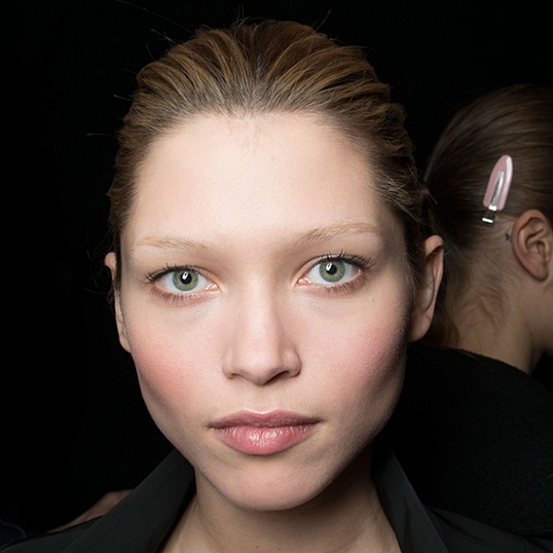 Довести до совершенства естественную красоту девушек и сделать так, чтобы она обрела оттенок аристократичности, поручили визажисту Тому Пешо. Выполняя эту задачу, глаза и губы он решил не акцентировать и сосредоточился на коже. Тональные средства помогли выровнять тон, мазки хайлайтера на "яблочках" щек сделали кожу сияющей, а густо нанесенные персиковые румяна подчеркнули высокие скулы, что и добавило того самого благородства. Под тон румянам выбирали оттенок для губ — это тоже классическое правило.
