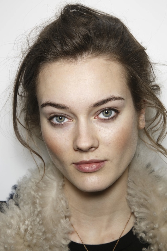 Завершал образ макияж от визажиста Дика Пейджа. "Мы сделали так, чтобы девушки выглядели прелестно, но не отвлекали внимание от одежды", — отметил он. Мастер обвел моделям контур глаз коричневым карандашом и растушевал, подкрасил ресницы, а также воспользовался бронзером, чтобы тон кожи получился теплым.