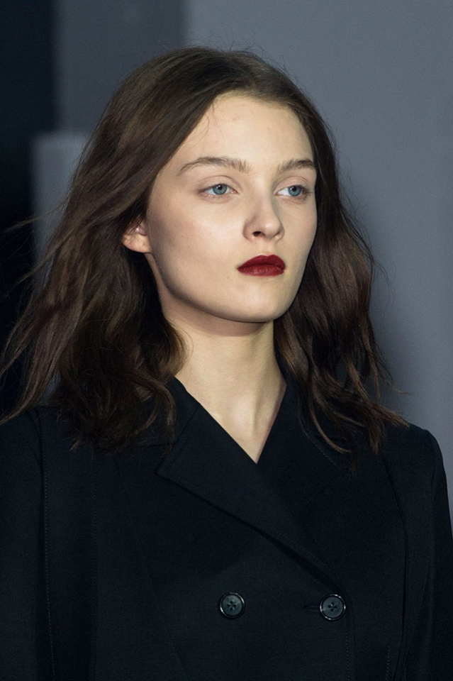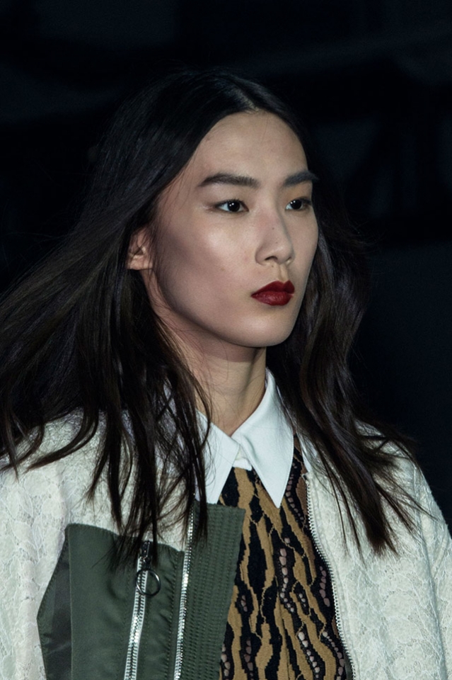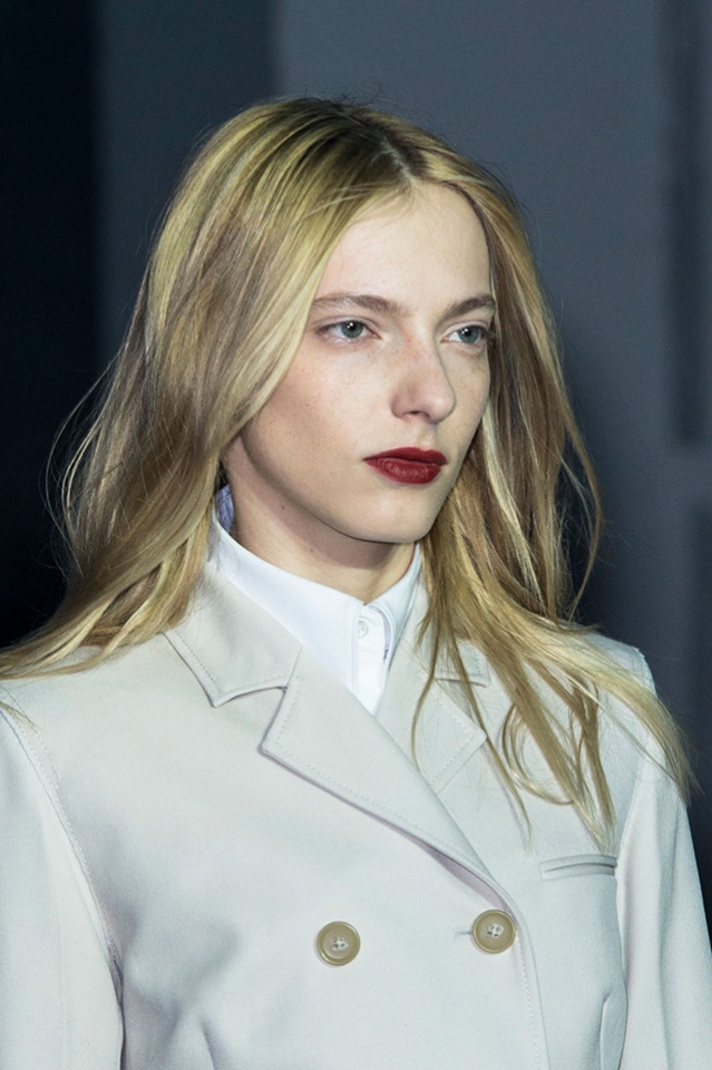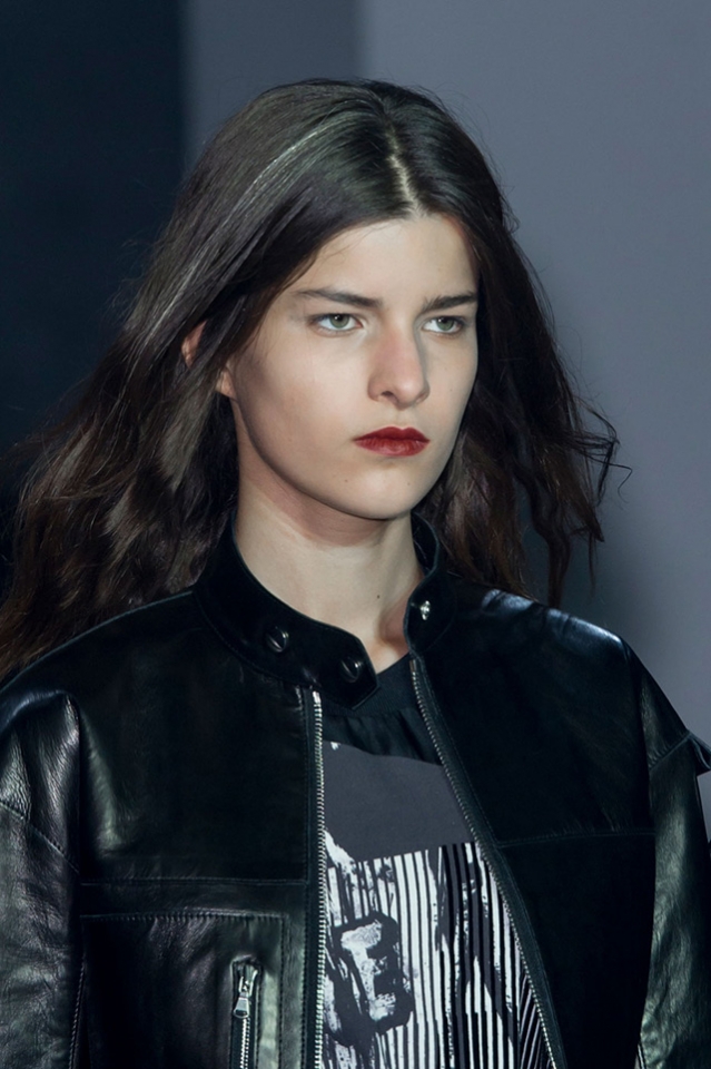 За макияж во время показа отвечала Франсель Дали, работающая со средствами Nars. После того как она увлажнила кожу и выровняла тон при помощи Pure Radiant Tint Moisturizing, визажист нанесла легкую рассыпчатую пудру и подчеркнула форму лица новыми румянами Tribulation Blush. Добавить в образ немного панк-рока была призвана яркая помада. Для этого шоу Франсель выбрала драматичный красный оттенок под названием VIP Red. «Мне хотелось, чтобы макияж выглядел очень просто. Девушка в духе 3.1 Phillip Lim не проводит столько времени перед зеркалом. Она подходит, расчесывает брови и наносит помаду. Готово», — комментирует визажист получившийся образ.