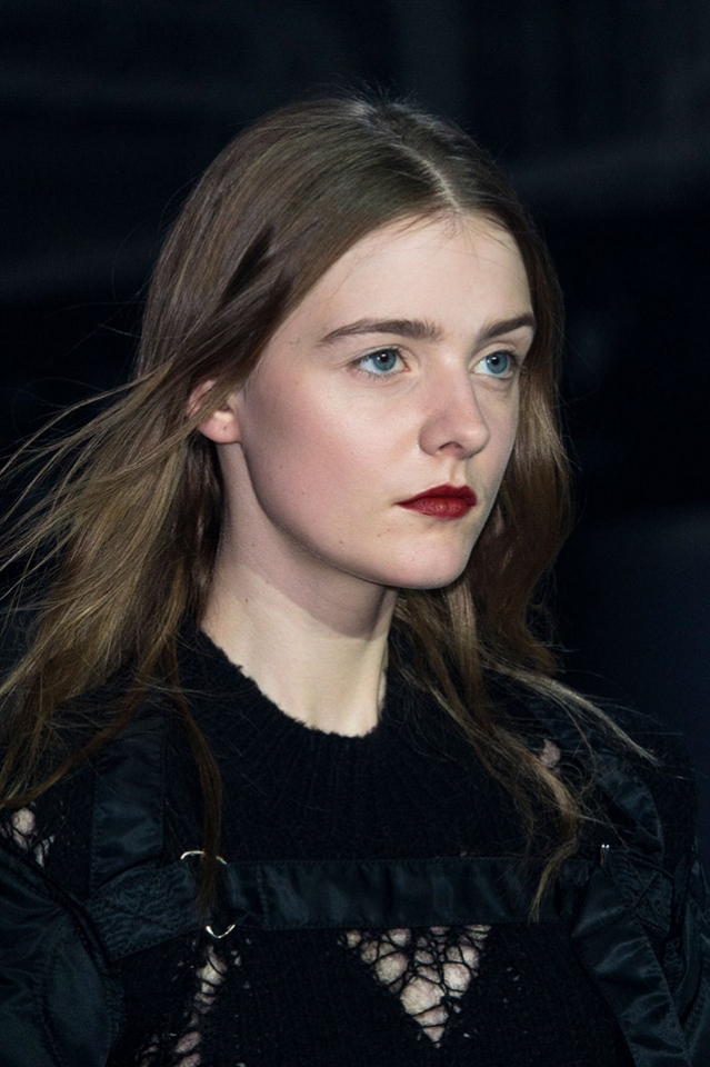 Так, для укладки Пол Хэнлон вдохновился образом Кейт Мосс времен ее первых съемок: «Это не гранжевая, а очень простая и чистая укладка. Как если бы она просто помыла волосы и отправилась на фотосессию». Для этого Пол решил поиграть с текстурами, разделив волосы на прямой пробор: верхнюю часть он оставил гладкой, а нижнюю уложил натуральными волнами с помощью утюжка, закрепив лаком.