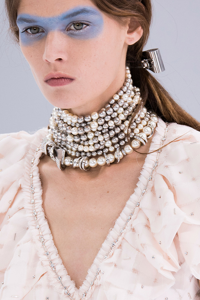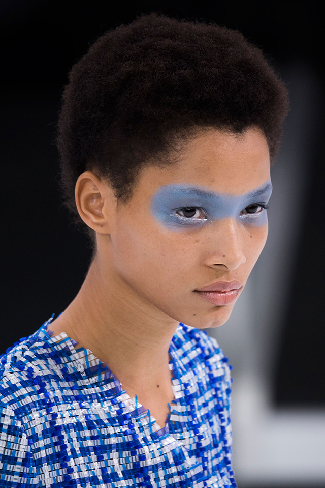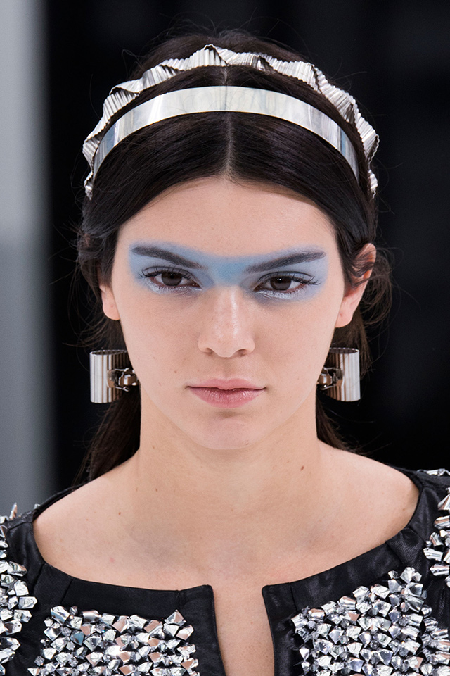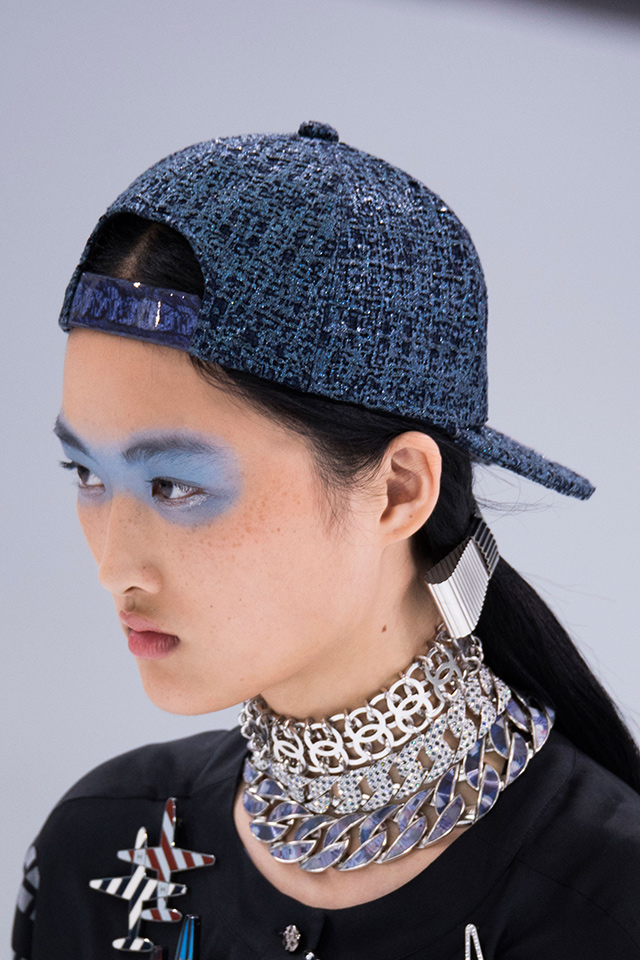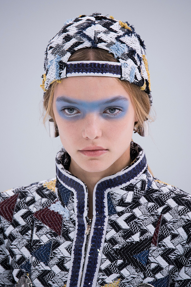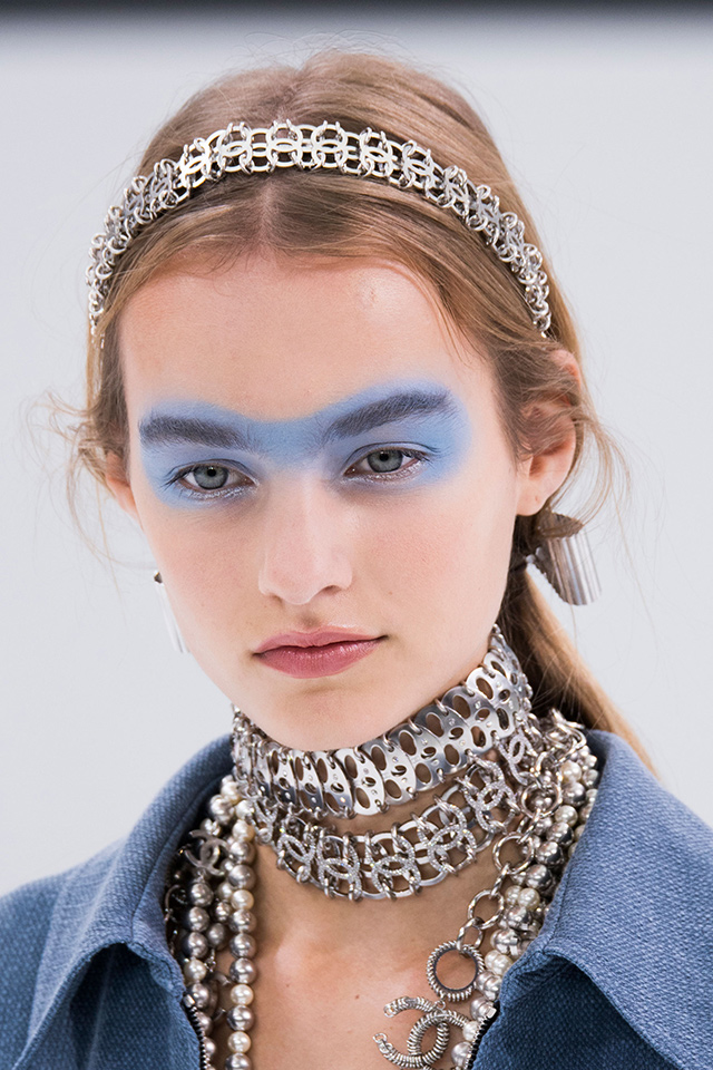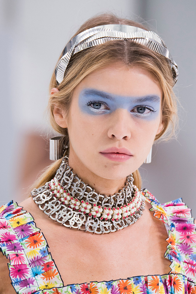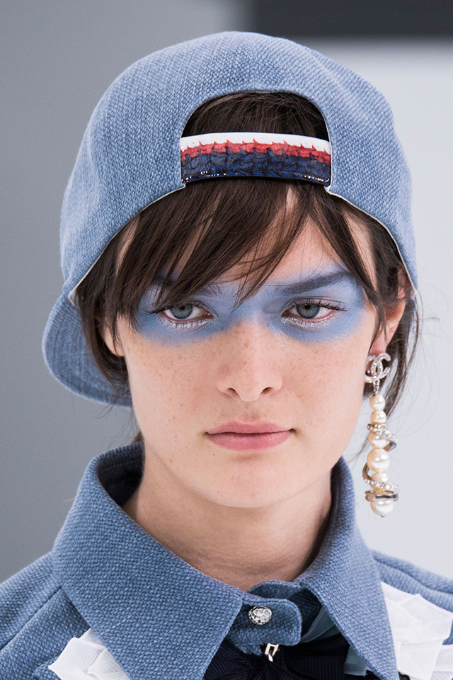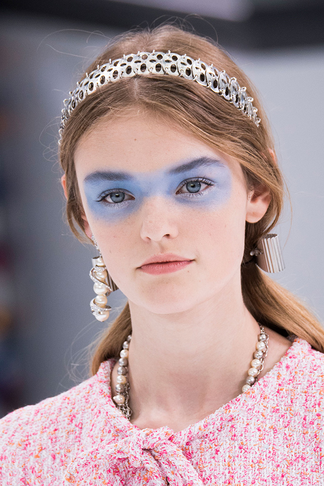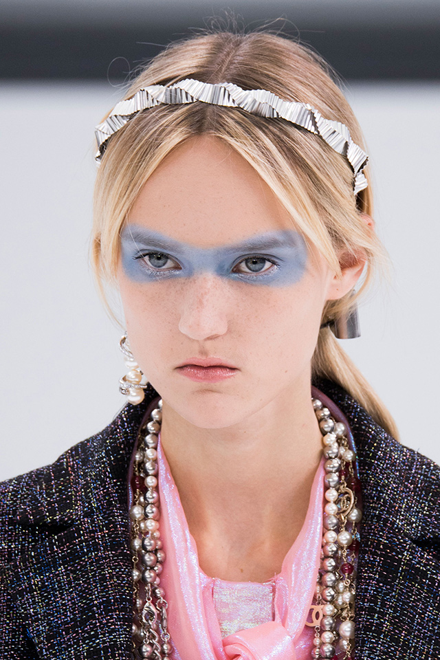 На шоу Chanel стилисты и визажисты переосмыслили образы стюардесс, шумную эстетику аэропорта и романтичные полеты в далекие и не очень страны — именно поэтому в макияже было так много небесно-голубого