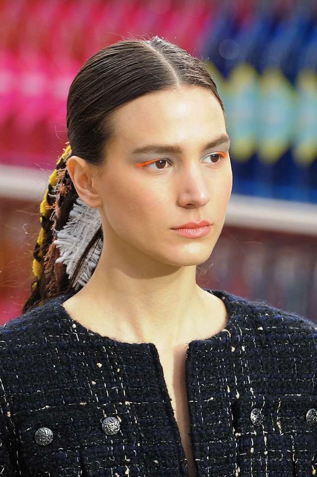 Потребительский рай Карла Лагерфельда на последнем показе Chanel (гостям он предложил почувствовать себя посетителями супермаркета) и новая коллекция пестрели цветами так, что глаза разбегались. Так что и в макияже моделей, решил визажист Питер Филипс, не могло быть одного ведущего оттенка. Он не мог не вдохновиться яркостью того гастрономического многообразия с подиума Chanel и поэтому взялся за тени самых разных тонов: от неоново-розовых и зеленых до темно-синих и изумрудных.