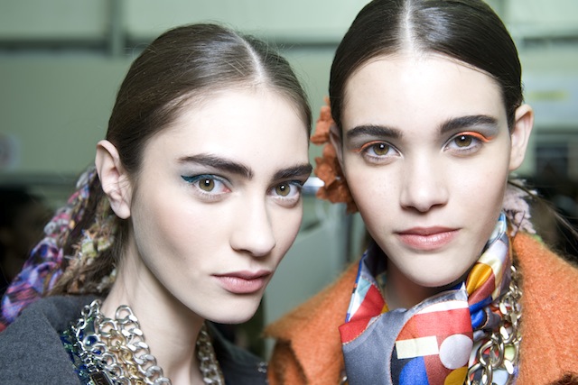 Ими он выводил стрелки точно до середины века, а фоном для этого яркого акцента служил слой белых перламутровых теней, растушеванных почти до бровей. Губы вновь остались без внимания (это уже, бесспорно, новая осенне-зимняя тенденция), зато макияж глаз получился, пожалуй, более всех предыдущих достойным внимания в этом сезоне показов.