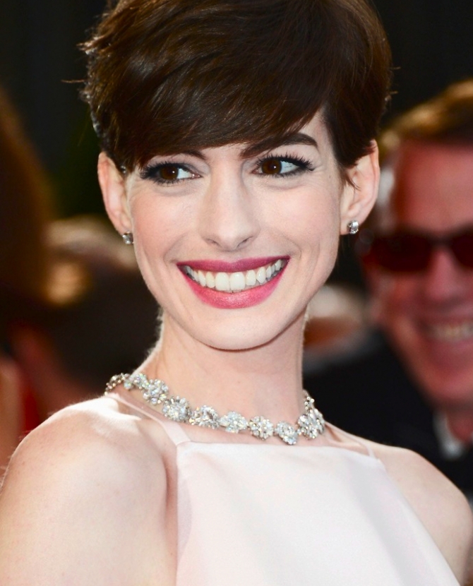 Энн Хэтэуэй явно готовилась к получению "Оскара": Голливуд, который, как известно, любит рискованных девушек, оценил не только ее актерский талант, но и талант к перевоплощению. Короткая стрижка очень украшает актрису, и мы не можем этого не отметить.