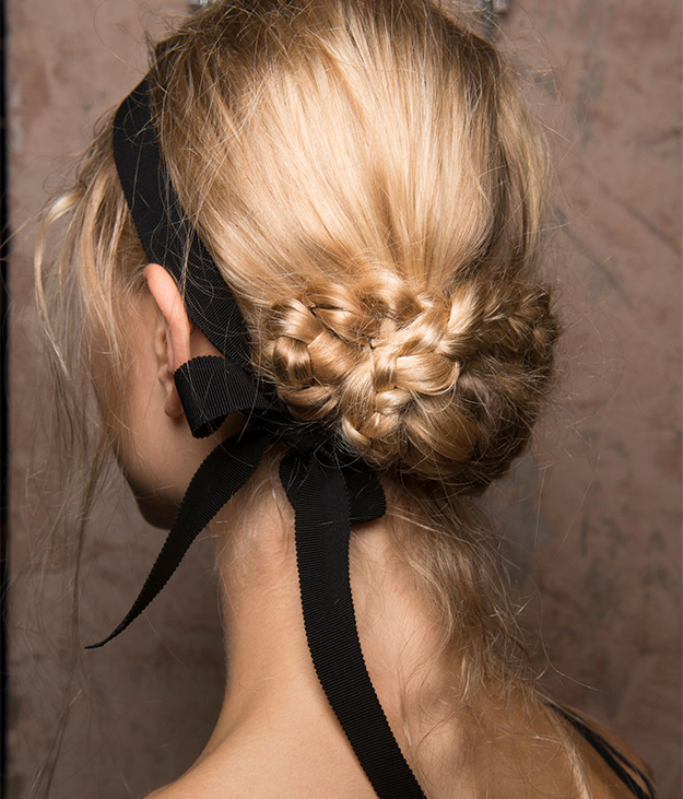 Неделя моды в Лондоне показала всю необходимость ленты в волосах. Можно распустить волосы или завязать их в хвост. Лента может быть прямой или скрученной из шелкового платка. Делать бант у виска или завязать ее под волосами — выбор за вами. На показе Erdem такая прическа выгодно подчеркивала и вечерний образ, и повседневную классику.