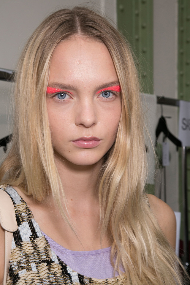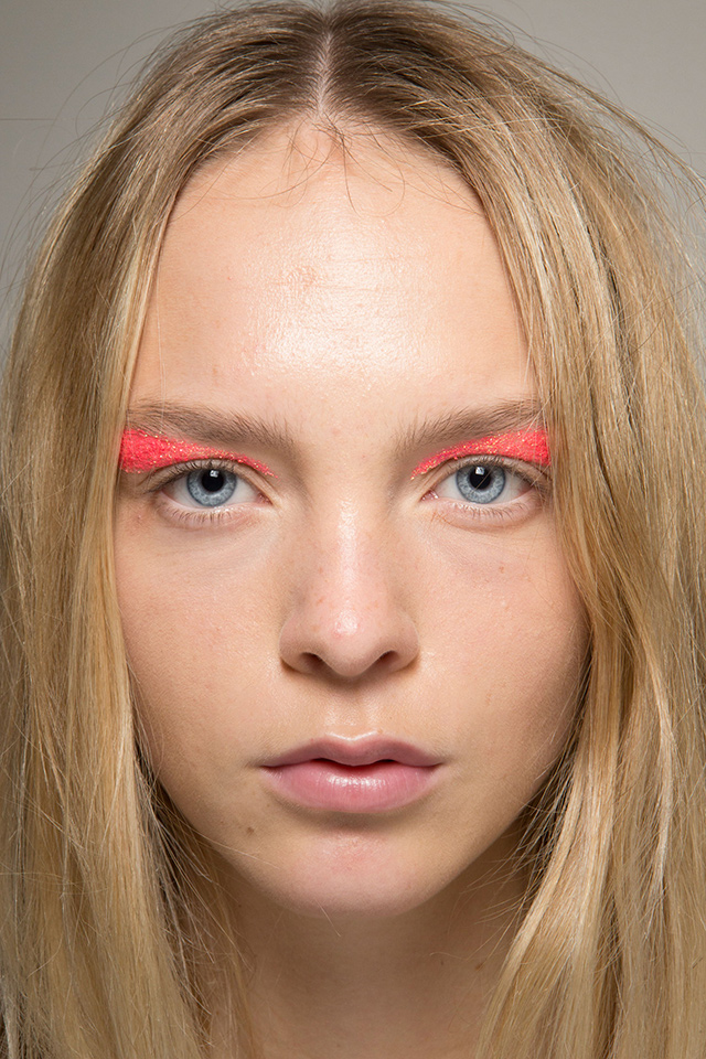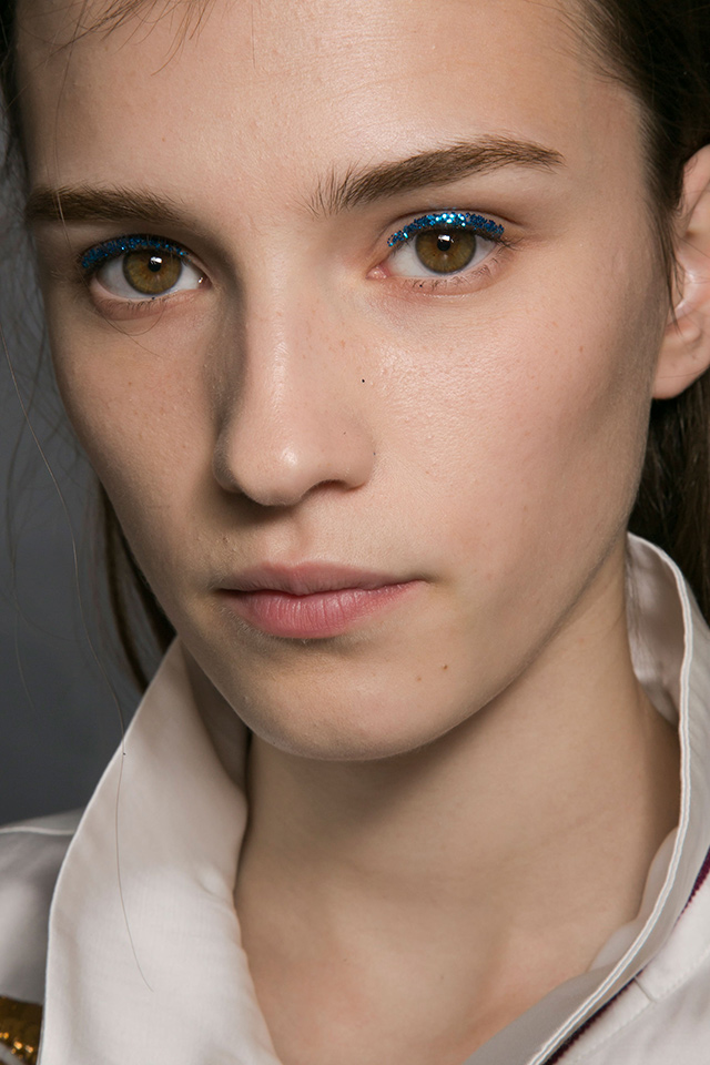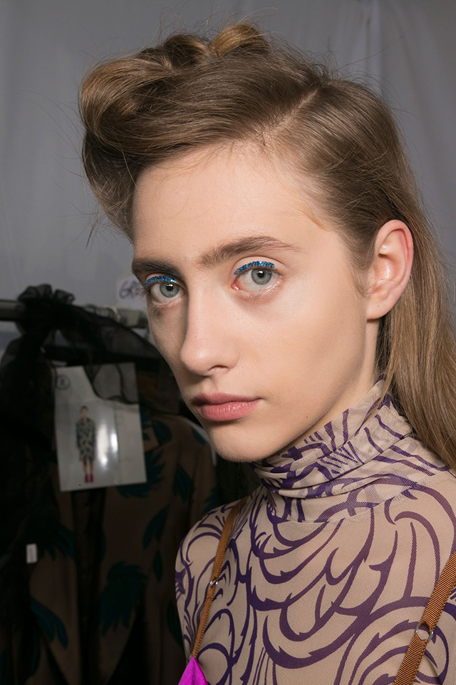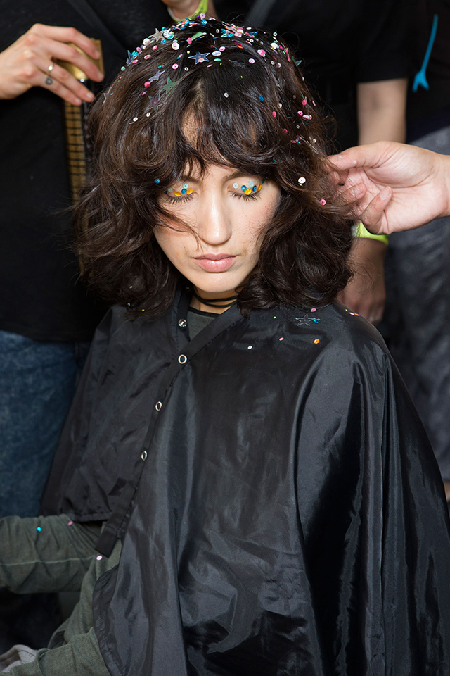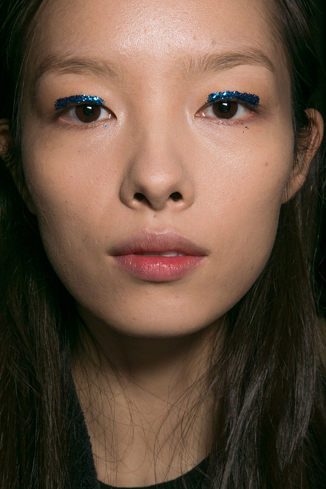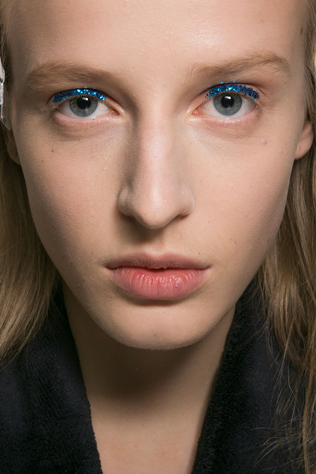 К летящим нарядам стилист Пол Хэнлон добавил будто бы наспех сделанные прически — легкие волны и полураспущенные косы. А вот где была настоящая фантазия, так это в макияже, созданном Вэл Гарланд. Она нанесла разноцветный глиттер прямо под брови на специальный Mixing Medium Eyeliner от M. A. C.