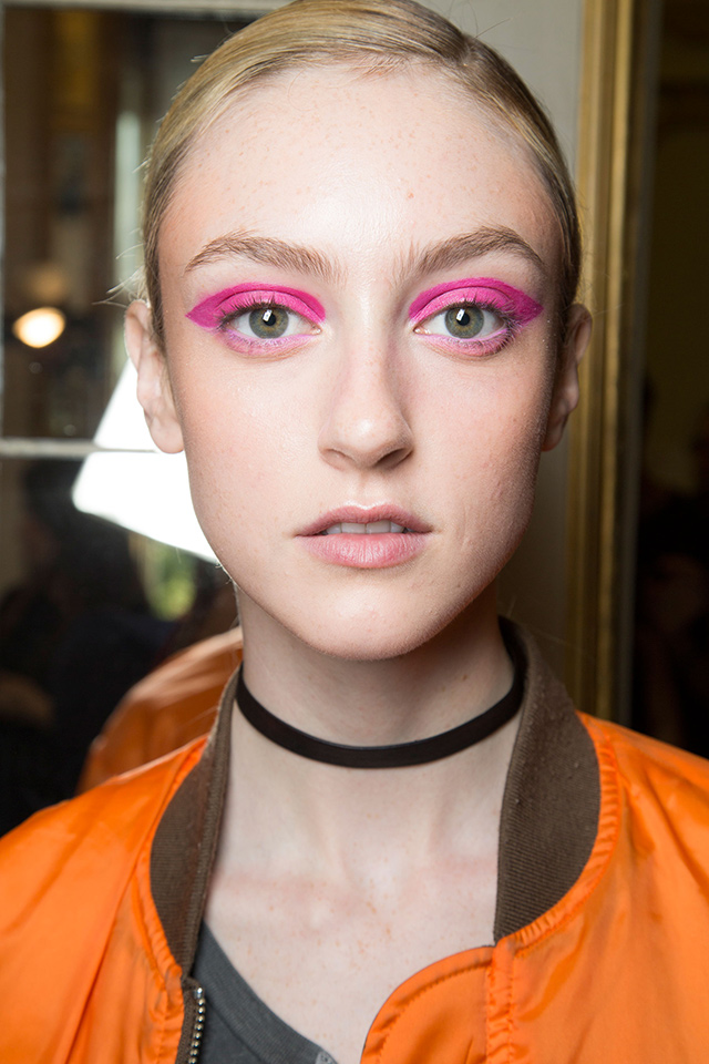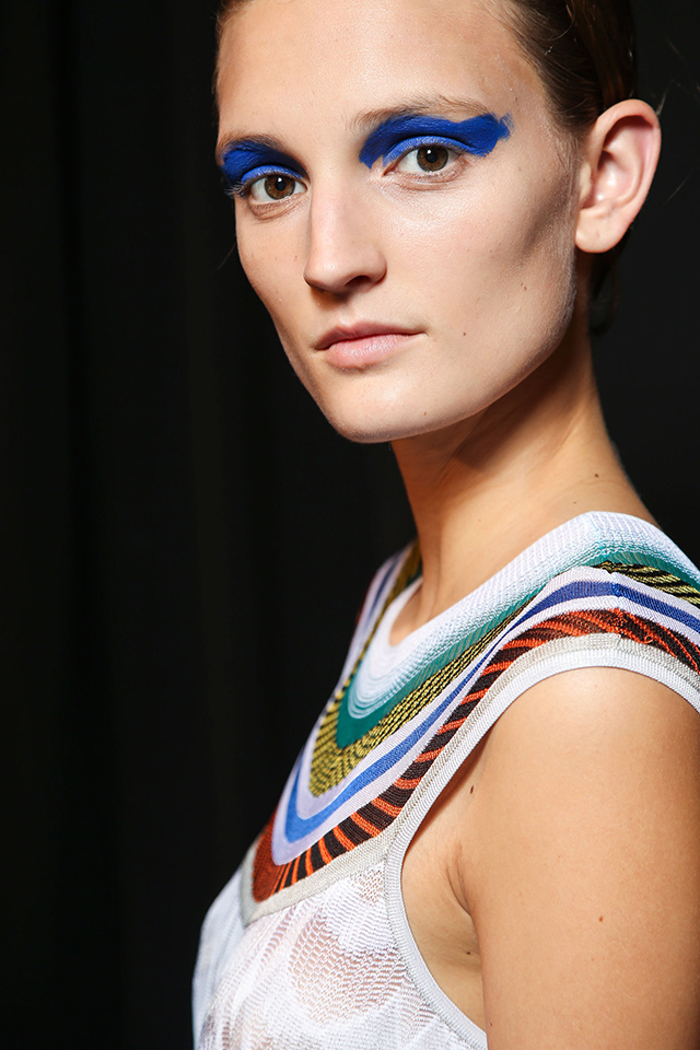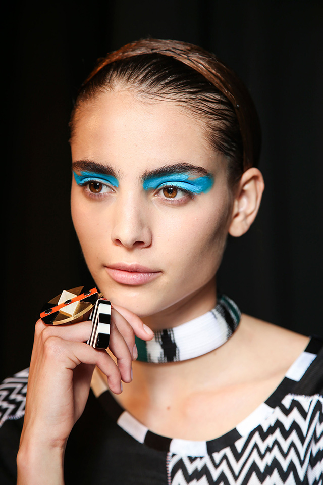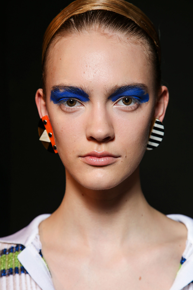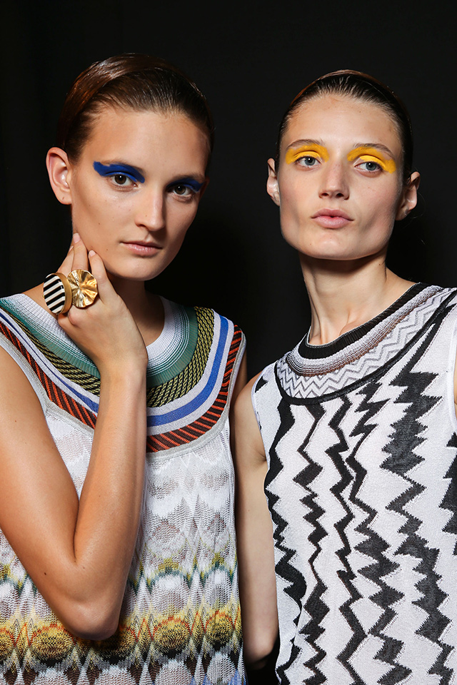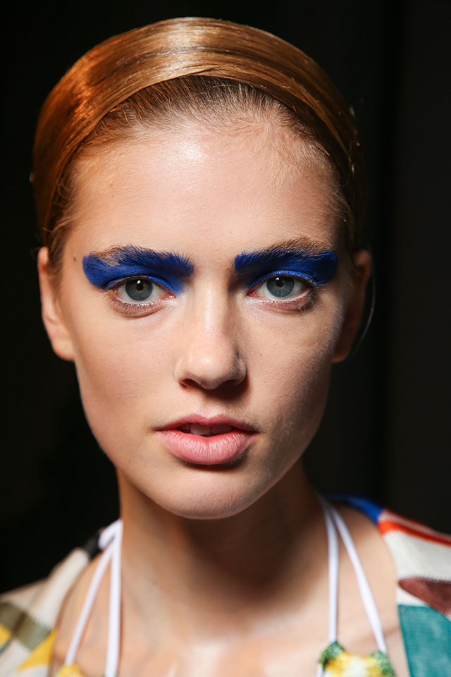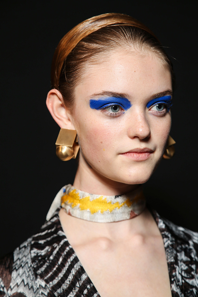 Визажист показа Лючия Пьерони не раз упоминала о том, что вдохновлялась работами Анри Матисса и Поля Гогена. В макияже были использованы цвета красок с полотен этих знаменитых художников. Веки моделей украсил аквагрим желтого, бирюзового и синего цветов, нанесенный небрежными мазками.
