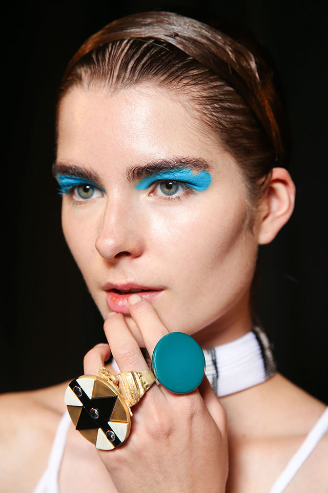 Кому только не запомнился бьюти-образ, созданный для шоу Diane von Furstenberg, а ведь он стал олицетворением самой Дианы фон Фюрстенберг — именно такой она посещала знаменитую «Студию 54». Тени бирюзового и зеленого цветов с аквамариновым оттенком, сияющая кожа и копна кудрявых волос — вот они 1970-е.
