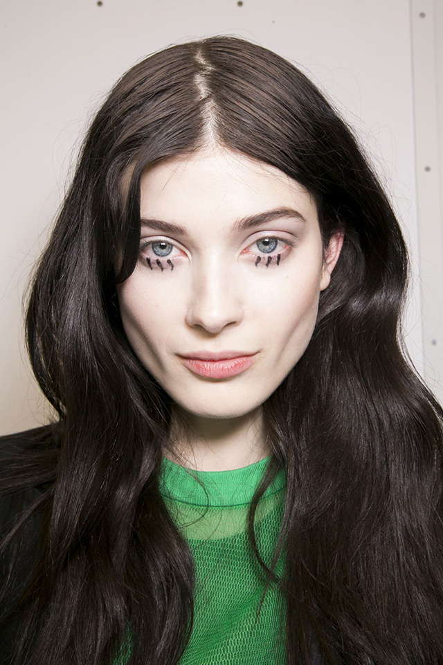 На шоу Vionnet визажист Том Пешо для создания кукольного взгляда вообще не использовал тушь и накладные ресницы — он просто нарисовал мягким карандашом по нижнему веку три вертикальные линии, похожие на ресницы, которые тут же добавили взгляду моделей наивный драматизм. Так что смело экспериментируйте с разнообразными техниками и средствами.
